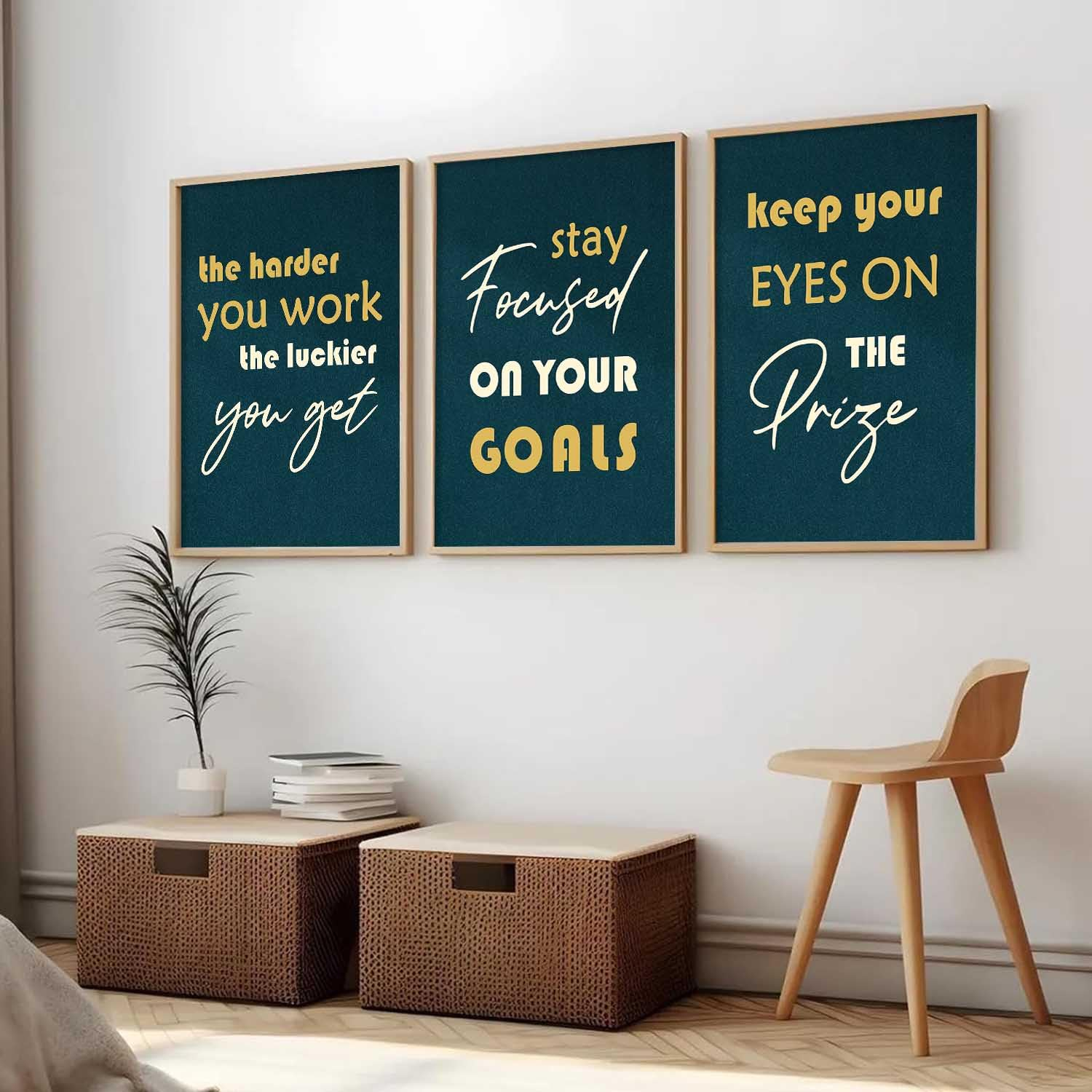 KRAYOG Motivational Framed Wall Art Posters for Office & Study Room – Digital Reprint Set of 3 (13 x 17 inches)