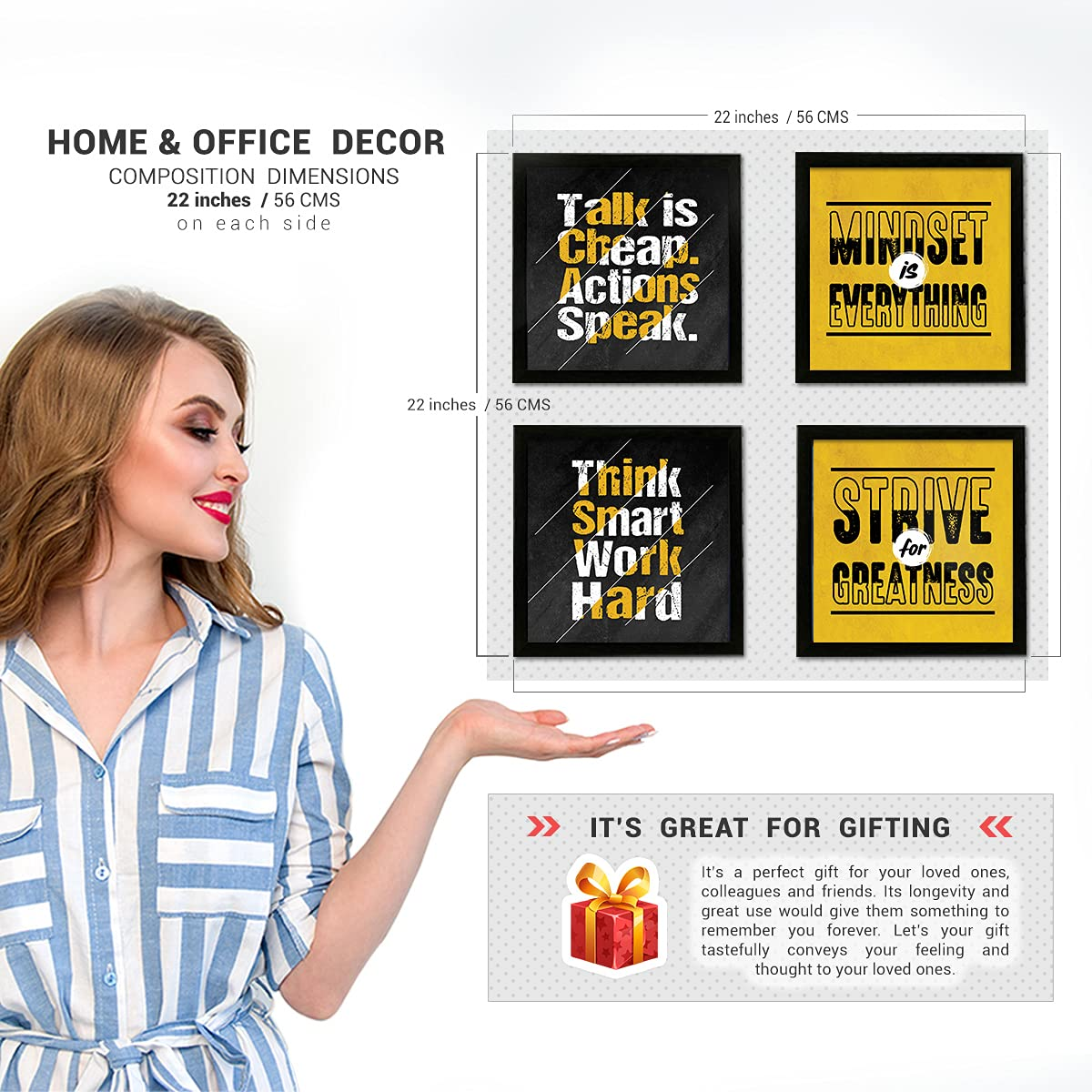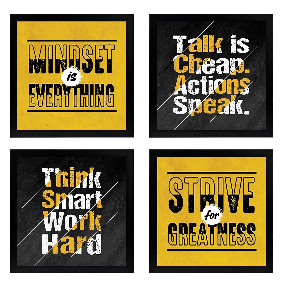 - IDEAL SIZE AND QUALITY – These Motivational Quotes frames (23 cm x 23 cm x 4 cm – Set of 4) are made of premium quality professionally matted Engineered wood; a protective plexiglass cover in front and strong MDF wood backing. Which make it light weight, break resistant and long lasting Framed posters.