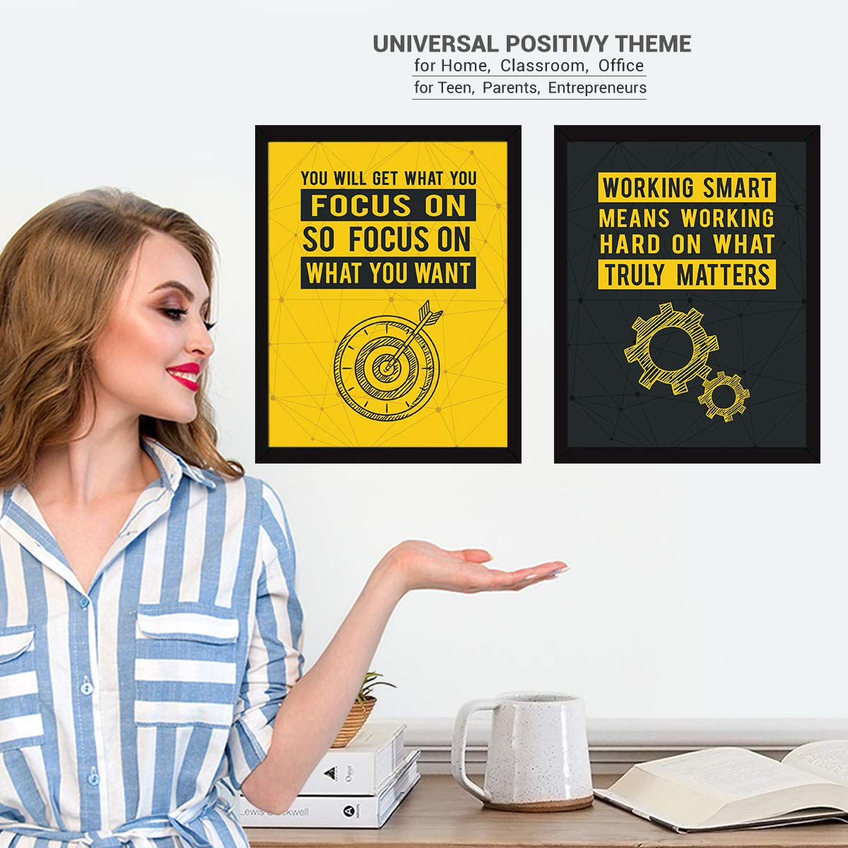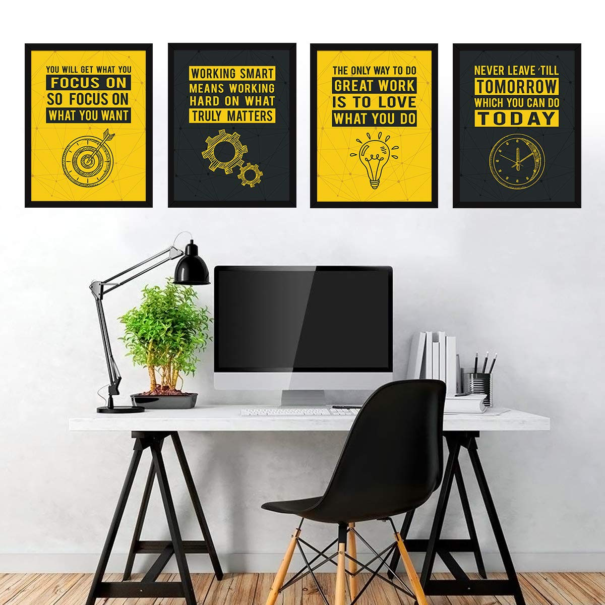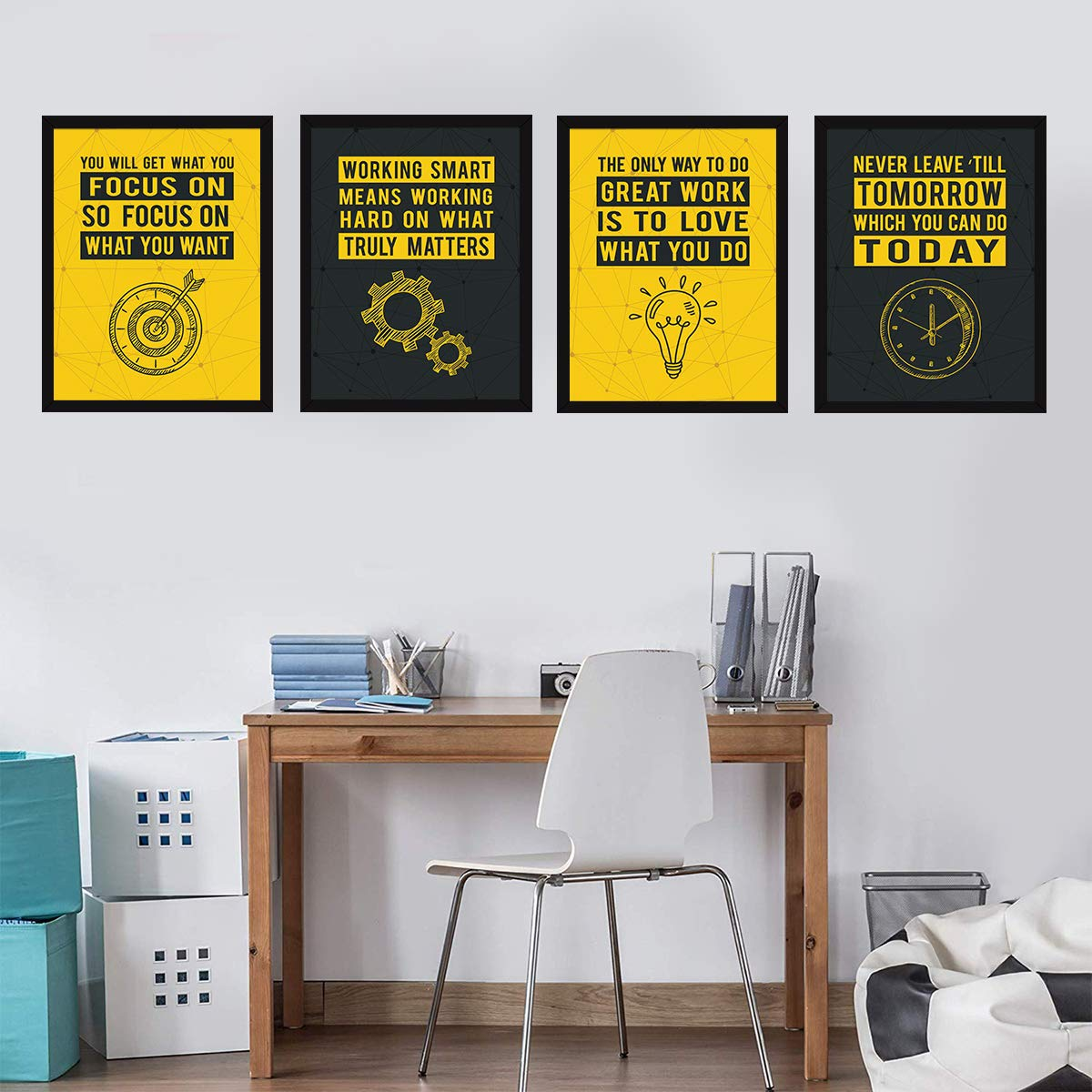 KRAYOG Motivational Quote Frames for Office & Study – Framed Posters with Inspirational Quotes for Office, Business, Study Room & Students (34 x 27 x 4 cm, Set of 4 Combo)