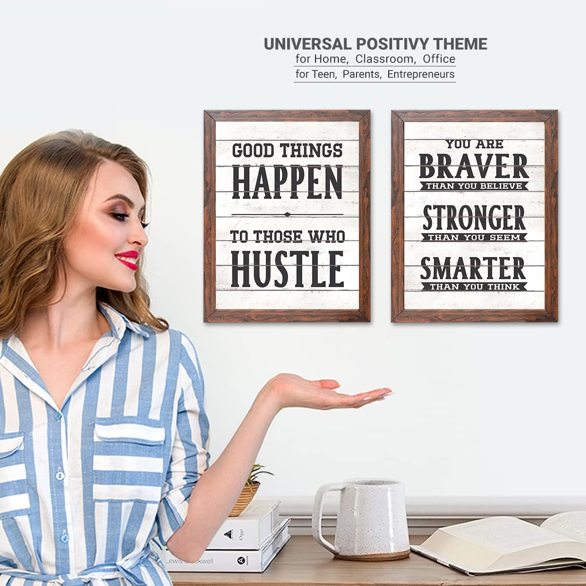 KRAYOG Motivational Quote Frames – Inspirational Wall Quotes for Office, Students & Study Room (14 x 11 Inches, Set of 4) – Classic Inspirational Quotes Collection