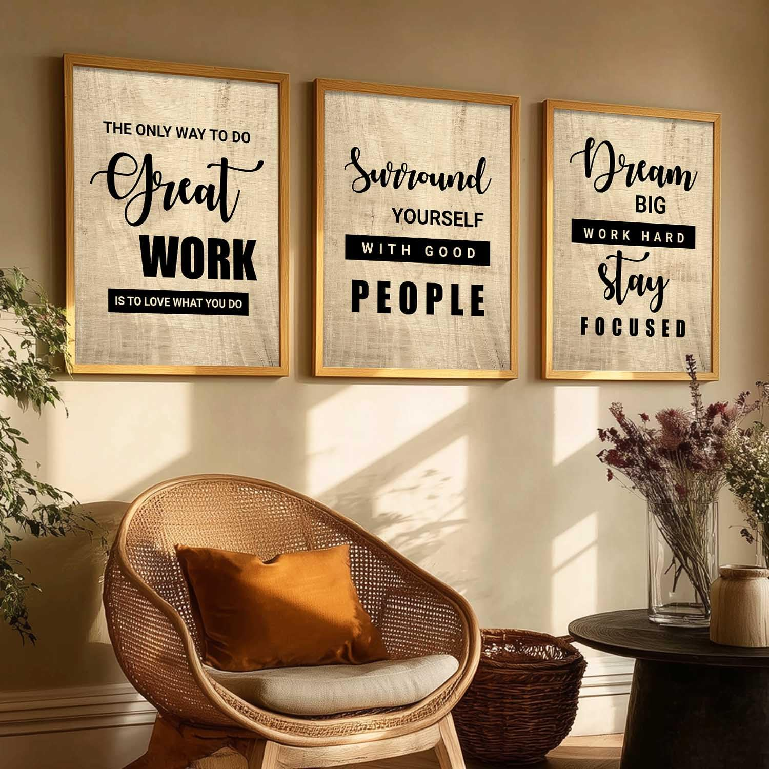 Bring positivity and style to your space with this Set of 3 Motivational Quote Framed Wall Posters (13×17 Inch). Designed to inspire and energize your surroundings, these posters are perfect for your office, study room, bedroom, or living area.