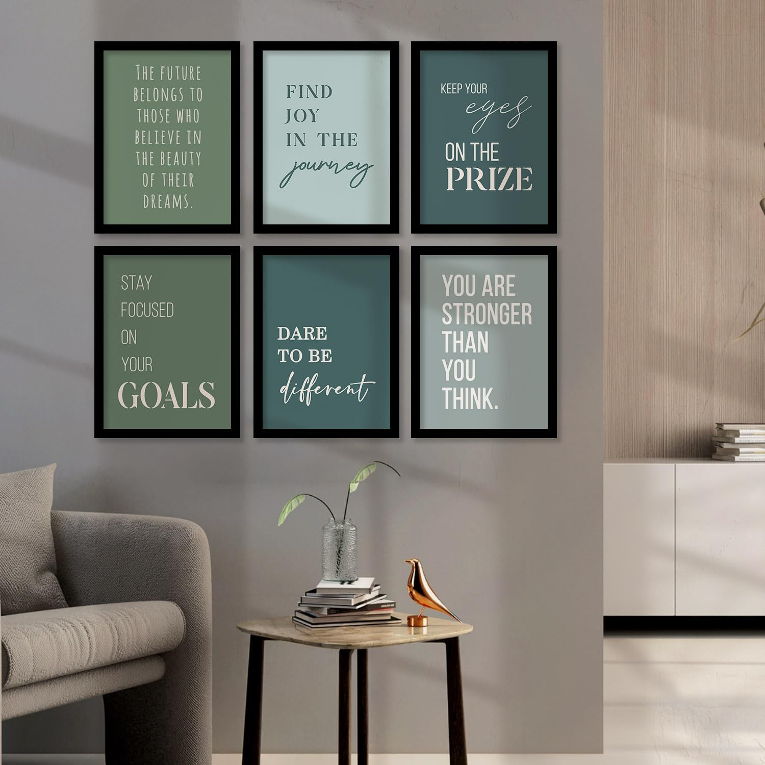 Decorate your space with this set of 6 inspirational quote frames designed in a sleek black rectangular style (10×13 inches). Featuring motivational artwork with high-quality prints and durable frames, these wall posters are perfect for home, office, bedroom, or workspace décor. A stylish way to add positivity and modern elegance to any wall.