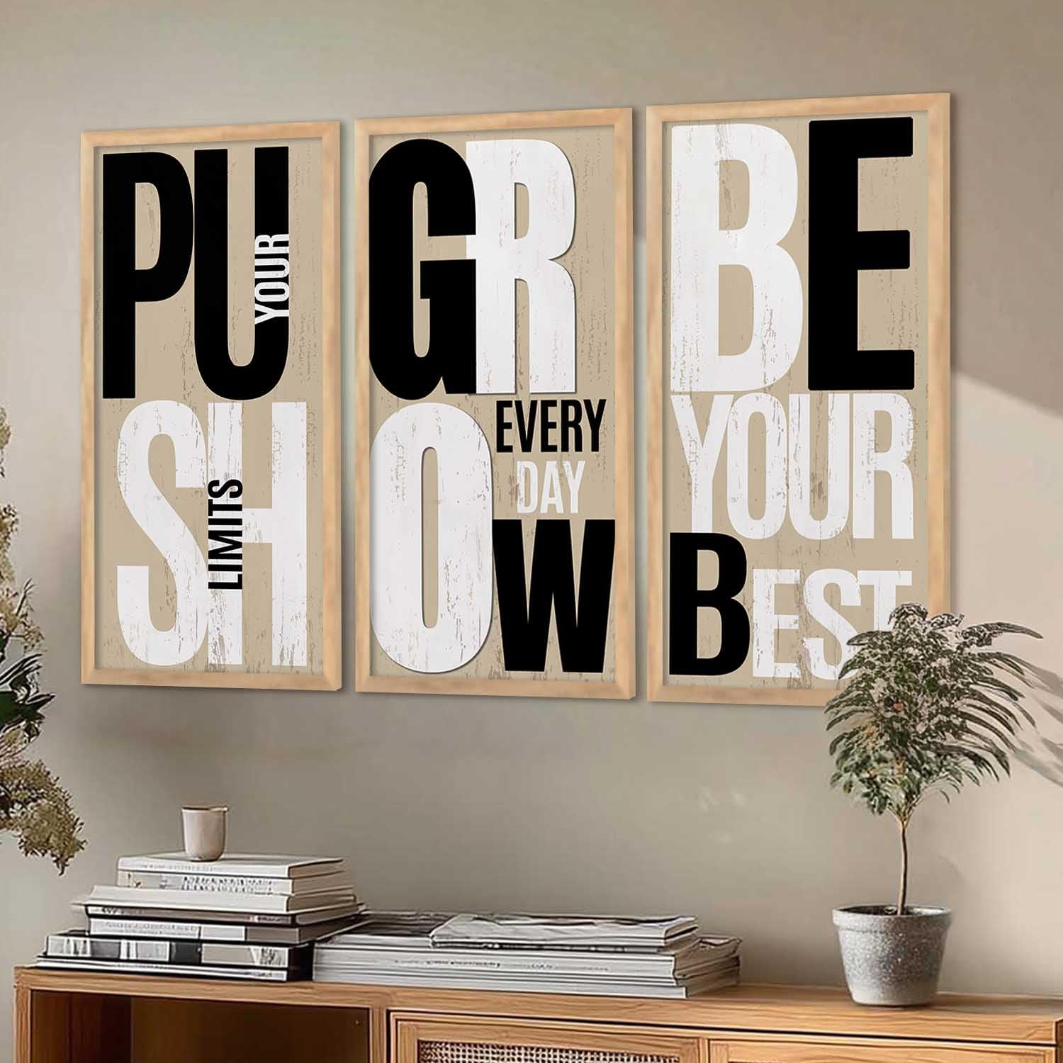 Upgrade your interiors with this Set of 3 Motivational Quote Wall Frames (10×19 inch, Design D). Featuring inspiring typography and premium-quality prints with sturdy frames, these ready-to-hang wall décor pieces are perfect for living rooms, bedrooms, offices, and study spaces. A great choice to add positivity and style to any wall.