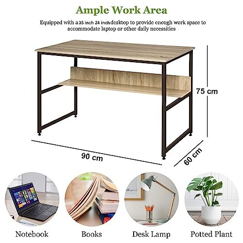 🖥️ Spacious Design: 90x60x75 cm dimensions offer ample space for laptops, monitors, and study essentials.