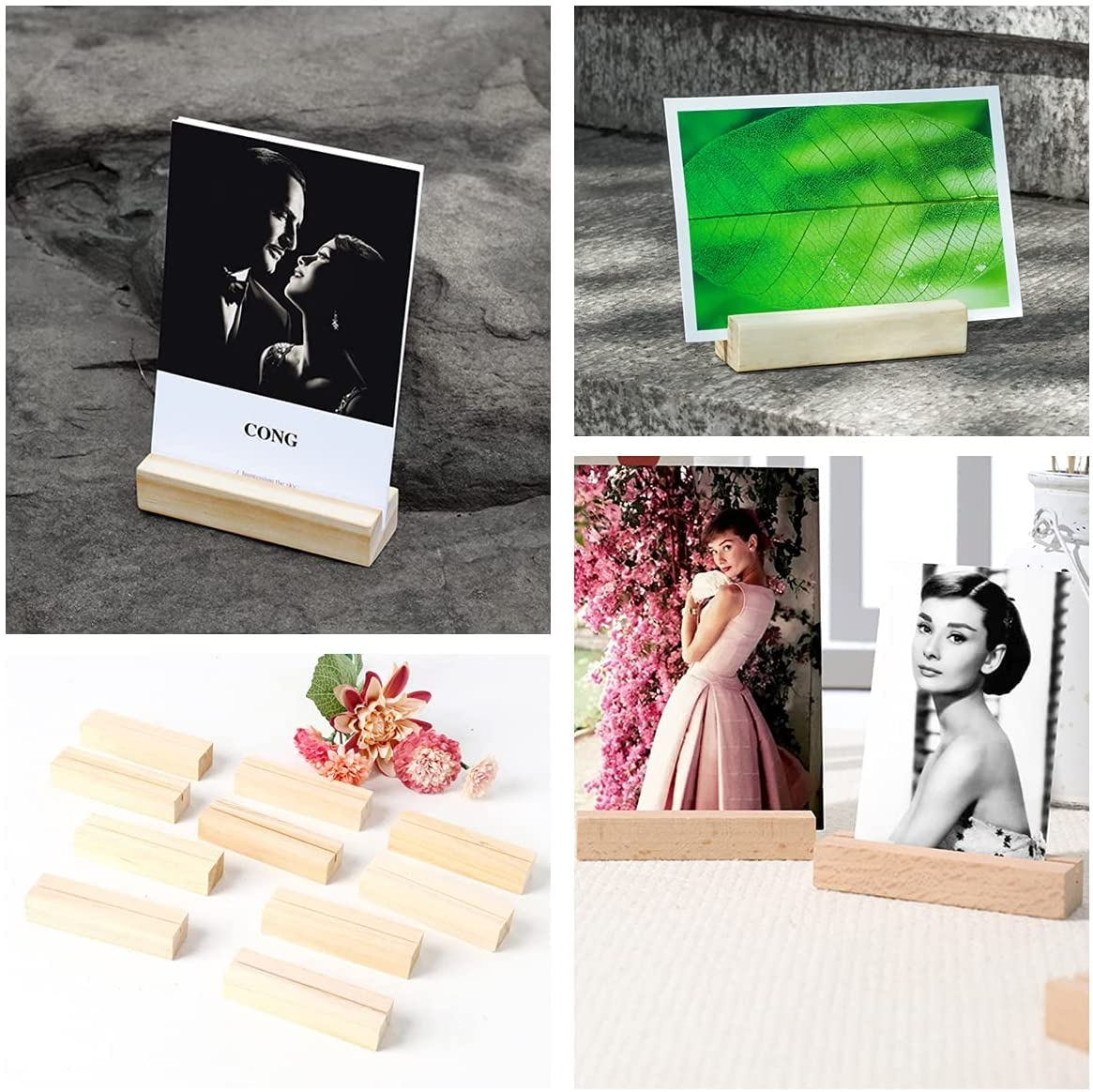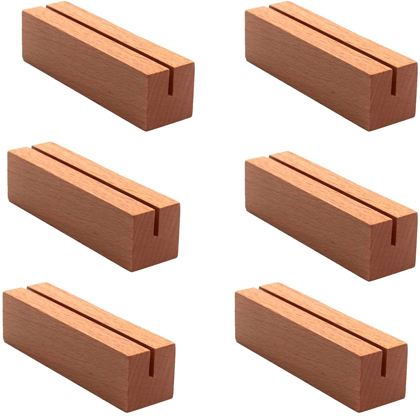 - WIDE USE – The wooden table number holders stand has wide use that perfectly works for displaying business cards, conference name card holder, business meetings name holder, table numbers, photos, pictures, discount signs, notes, mini menus, place cards, label tags, wedding & party table food markers, beverage markers, buffet food signs and name tags.