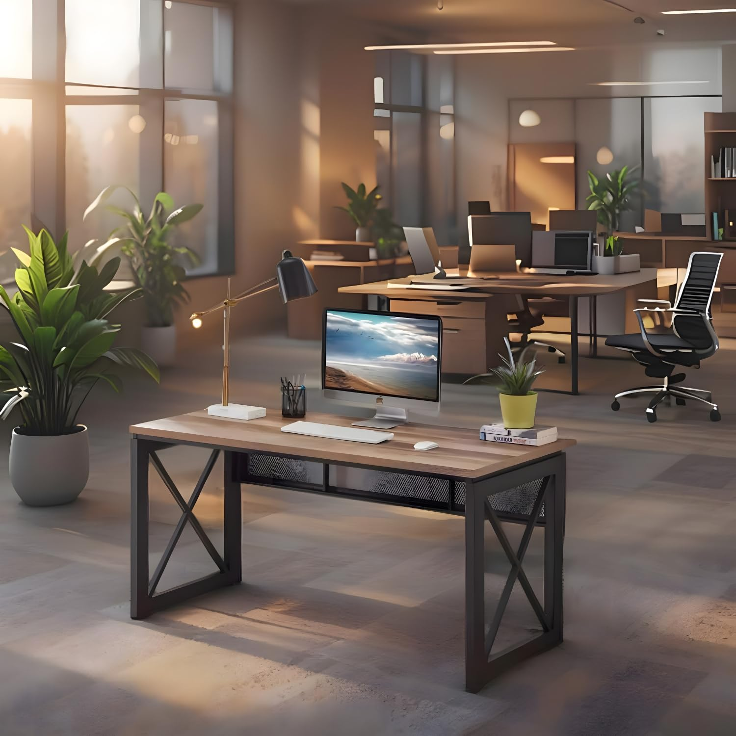 A stylish and functional computer desk designed for home and office use. Featuring a modern perforated front mesh design, durable brown wood top, and sturdy metal frame, this desk offers stability and comfort for work or study. Compact 100 x 60 x 75 cm size makes it ideal for small spaces, with easy DIY assembly for quick setup.