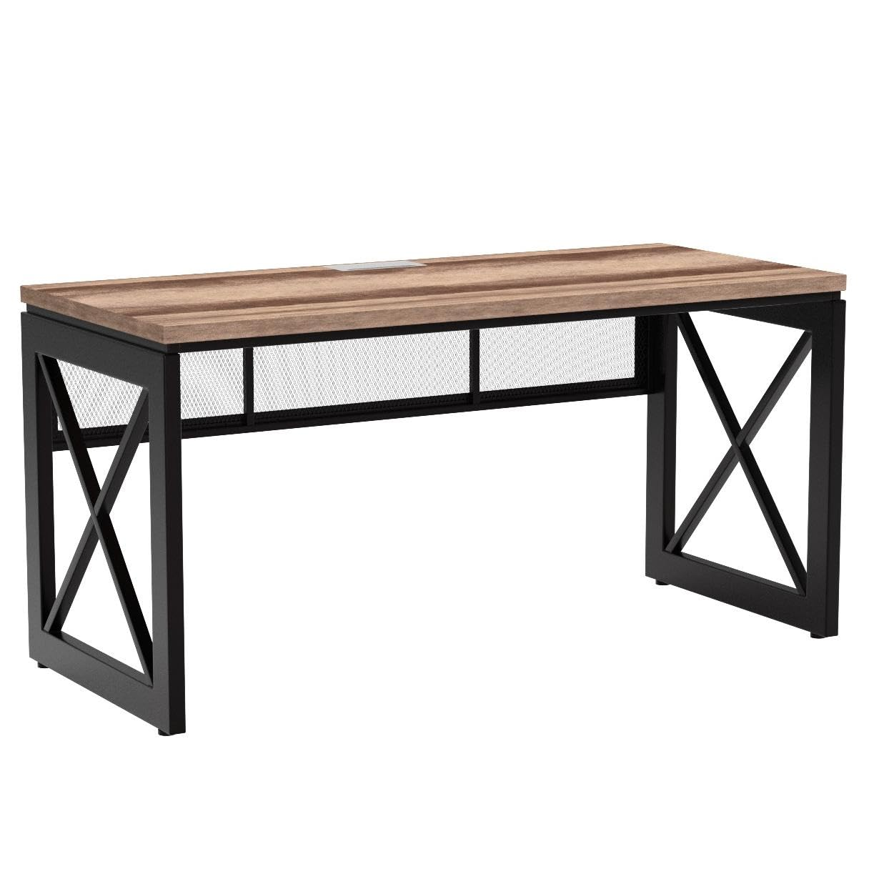 KRAYOG Perforated Computer Table for Home PC & Office | Front Mesh Design | Work & Study Desk for Home | Brown Wood & Metal Frame | 120 x 60 x 75 cm | DIY Assembly Required