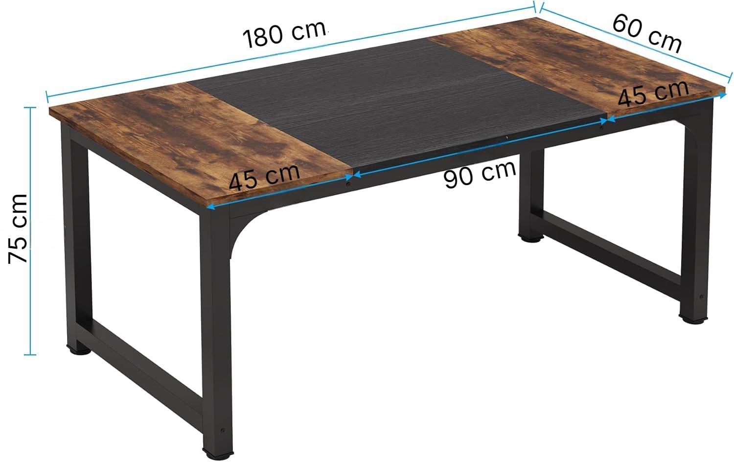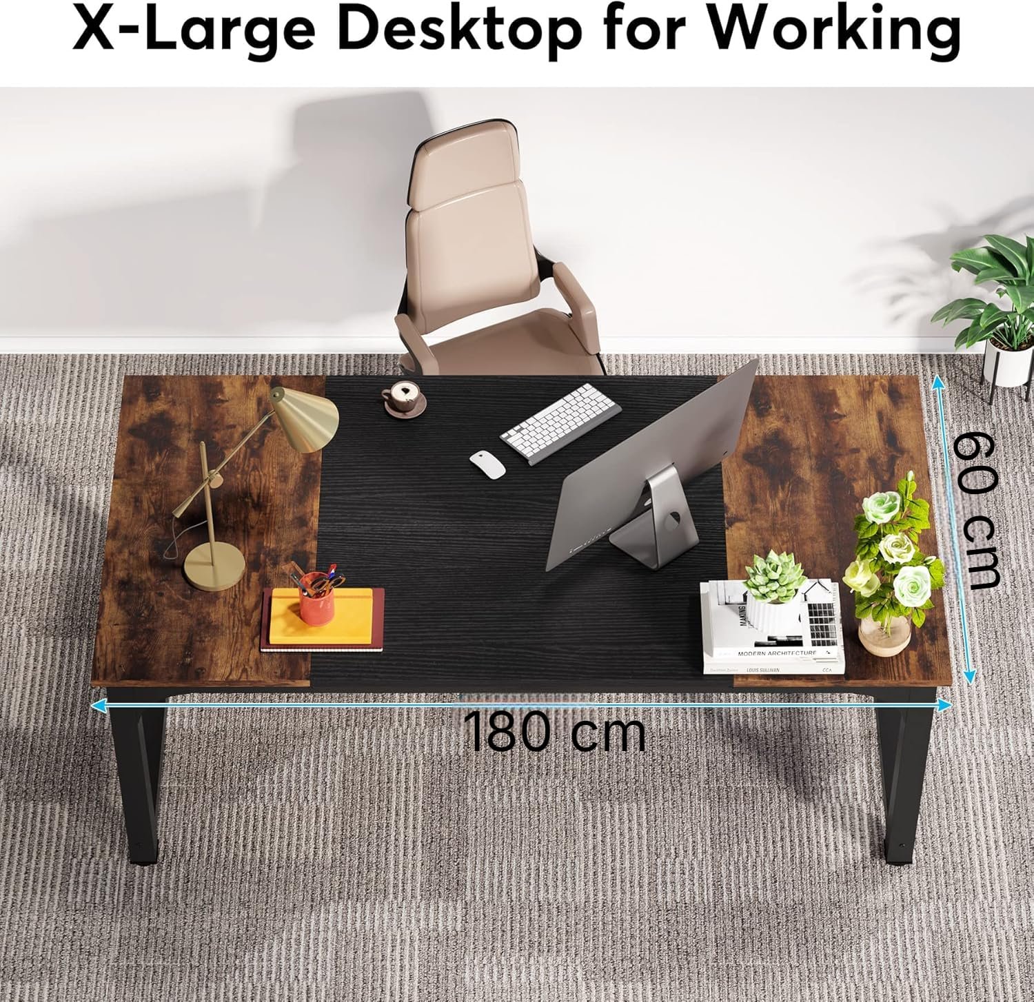 • Plenty of Workspace: The desk’s extra-large size (180 cm L x 60 cm W) provides ample space for working on a computer, doing paperwork, or conducting meetings. The extra-wide design allows for more space to spread out, which can be especially helpful for those who need multiple monitors or reference materials close at hand.