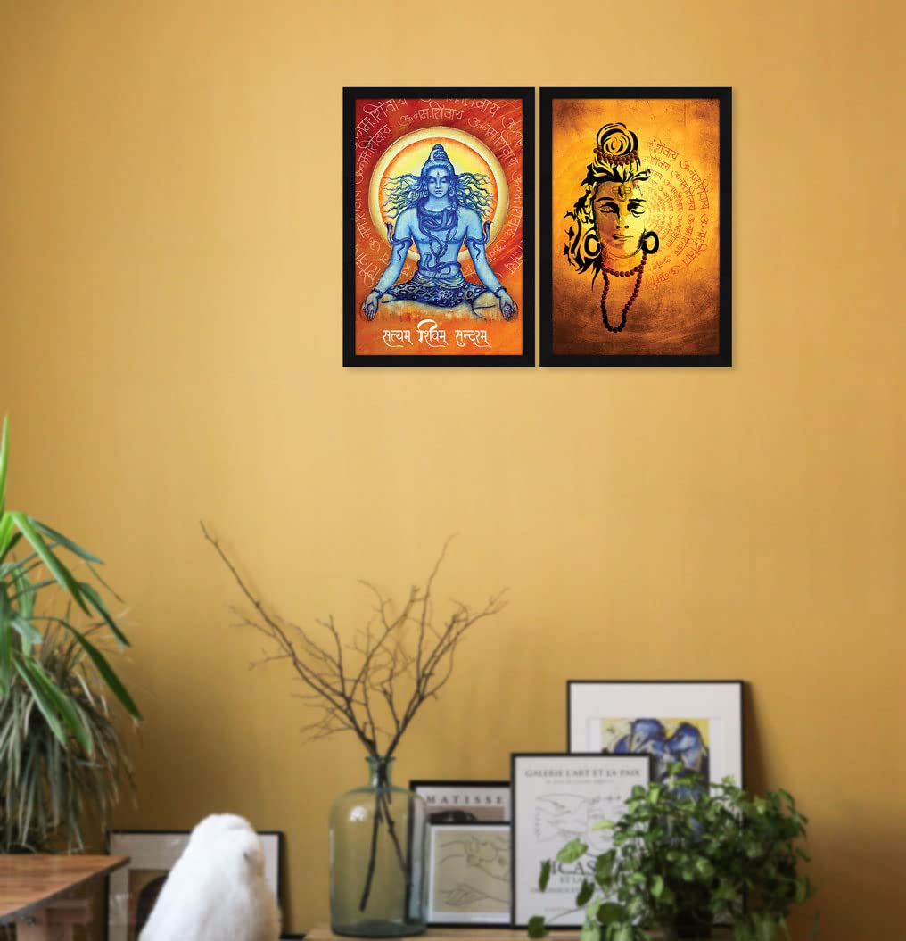 KRAYOG Powerful “Om Namah Shivaya” Shiv Mantra Framed Wall Art | Multicolor Religious Paintings | Set of 2 (12 x 18.05 Inches Each)