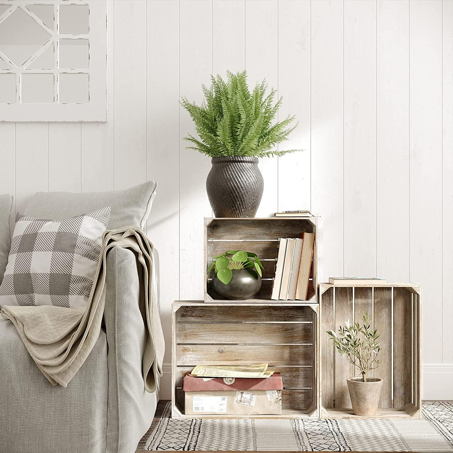 - Anywhere you want to add rustic home décor, these wood basket will complete the task successfully. Crates can be used to display potted plants, pottery, vintage books, wine, or other decorative items.
