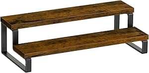 KRAYOG Rustic Wood Spice Rack – 2-Tier Kitchen Counter Organizer, Dark Brown