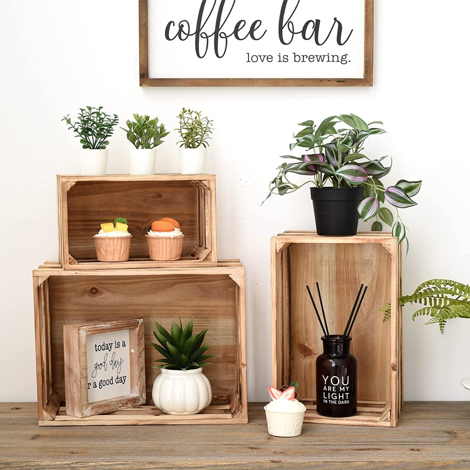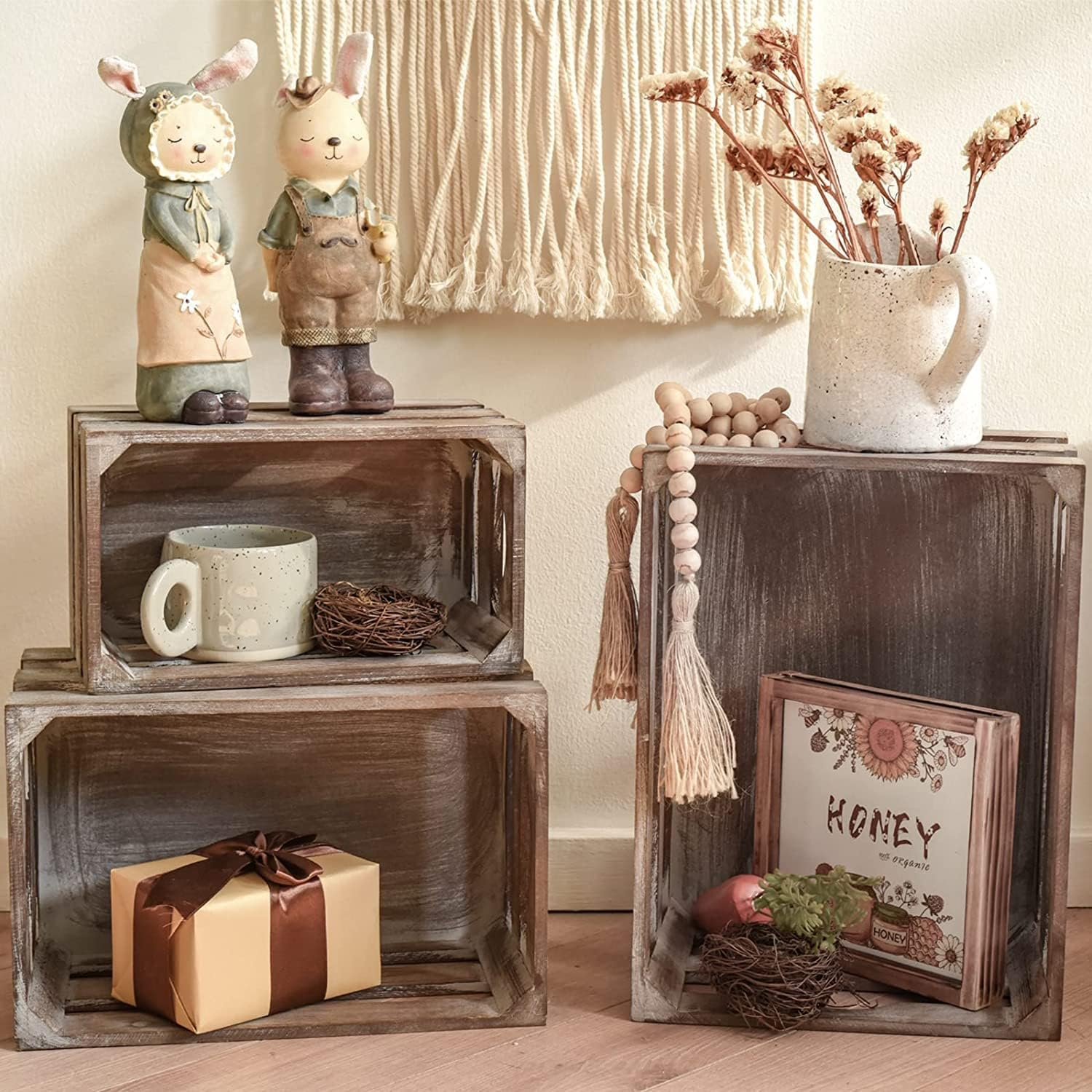 - Natural Wood Construction: To give our nested wooden crates greater strength and durability, they are made with solid wood and a strong frame structure.