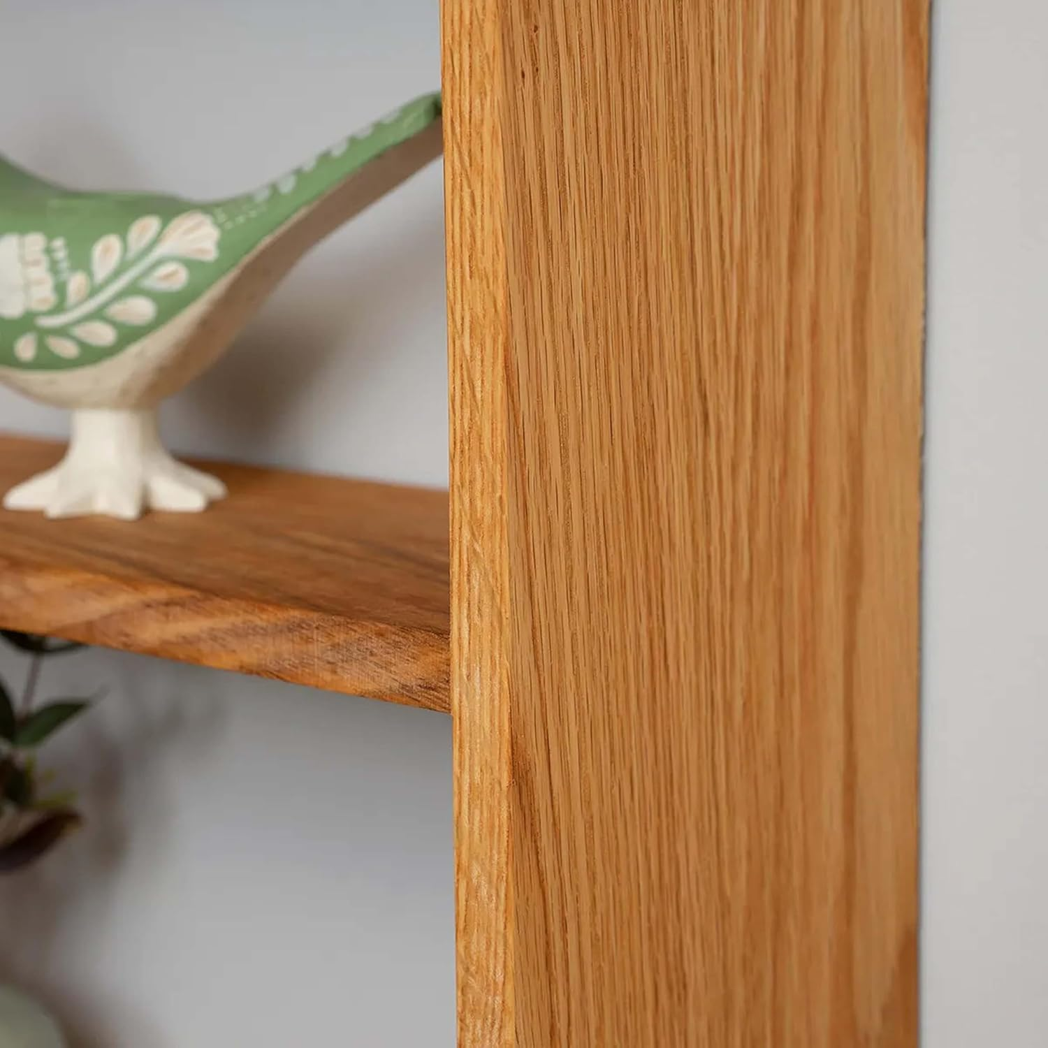 This solid oak wooden wall shelf features two tiers, offering a stylish and functional floating display solution for any room. Perfect for showcasing décor, books, or everyday essentials, it adds a modern touch to living rooms, bedrooms, or offices.