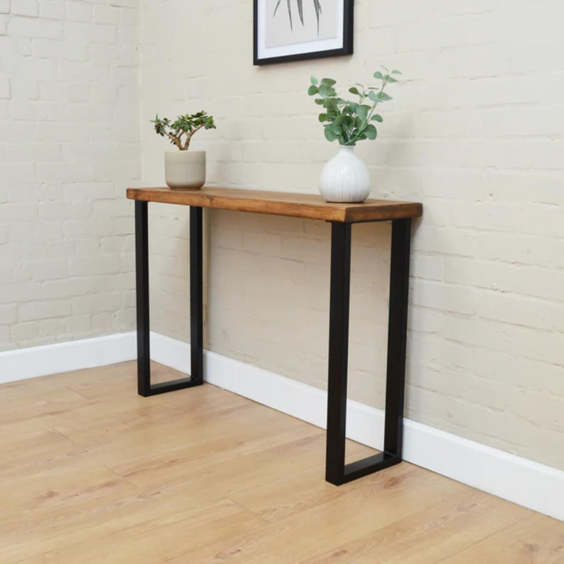 Upgrade your space with this solid Sheesham wood console table featuring a durable 30mm thick tabletop and generous dimensions of 100W x 25D x 88H cm. Crafted in an industrial modern design, it offers a perfect balance of strength, style, and functionality. Ideal for bedrooms, living rooms, or entryways, this versatile table is perfect for displaying décor, photo frames, plants, or organizing everyday essentials while adding a sophisticated touch to your interiors.