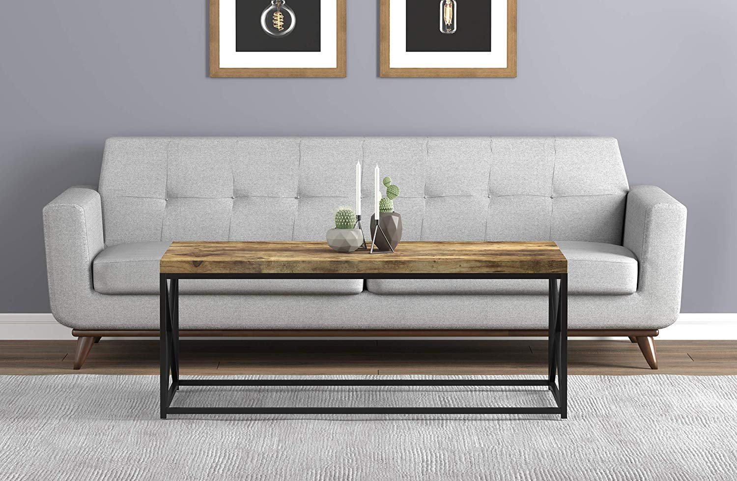 Krayog Solid Wood & Metal Coffee Table, Center Coffee Table for Living Room and Office