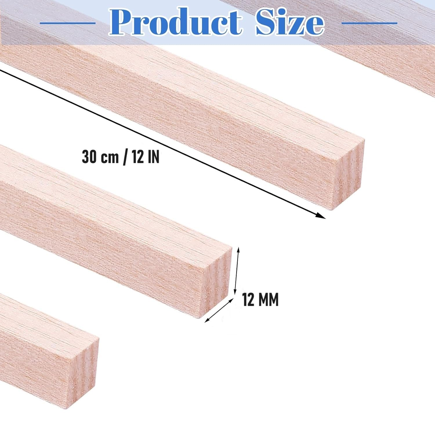 KRAYOG Square Wooden Dowels Sticks – 30 cm Length, 12 mm Thickness | Ideal for Crafts, Cake Support, Home Décor & DIY Projects (Pack of 8 | 30cm x 12mm)