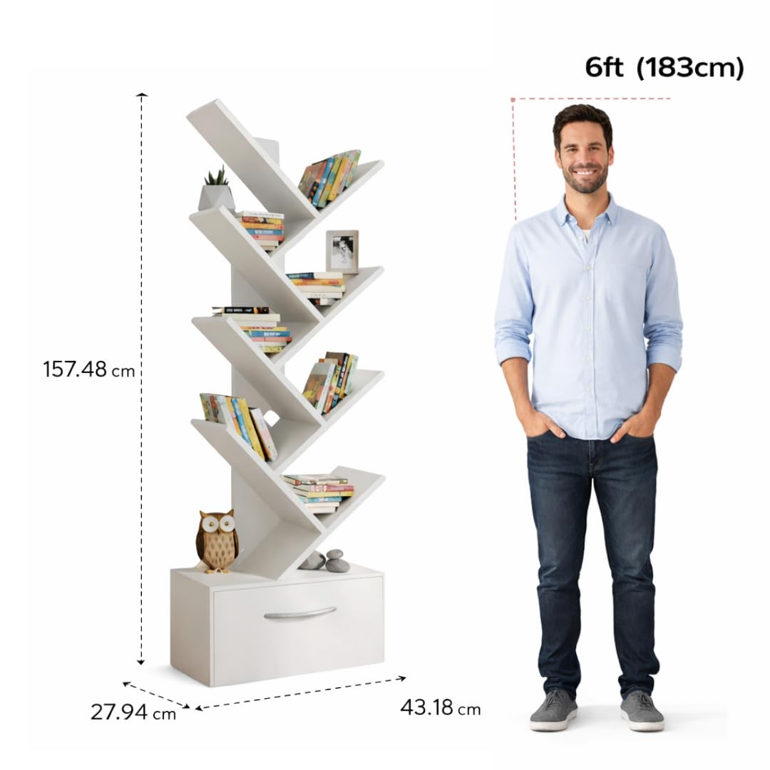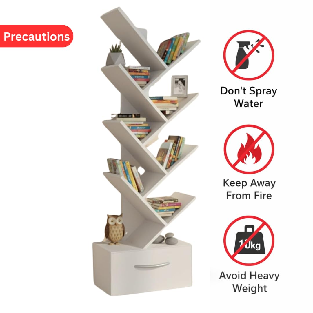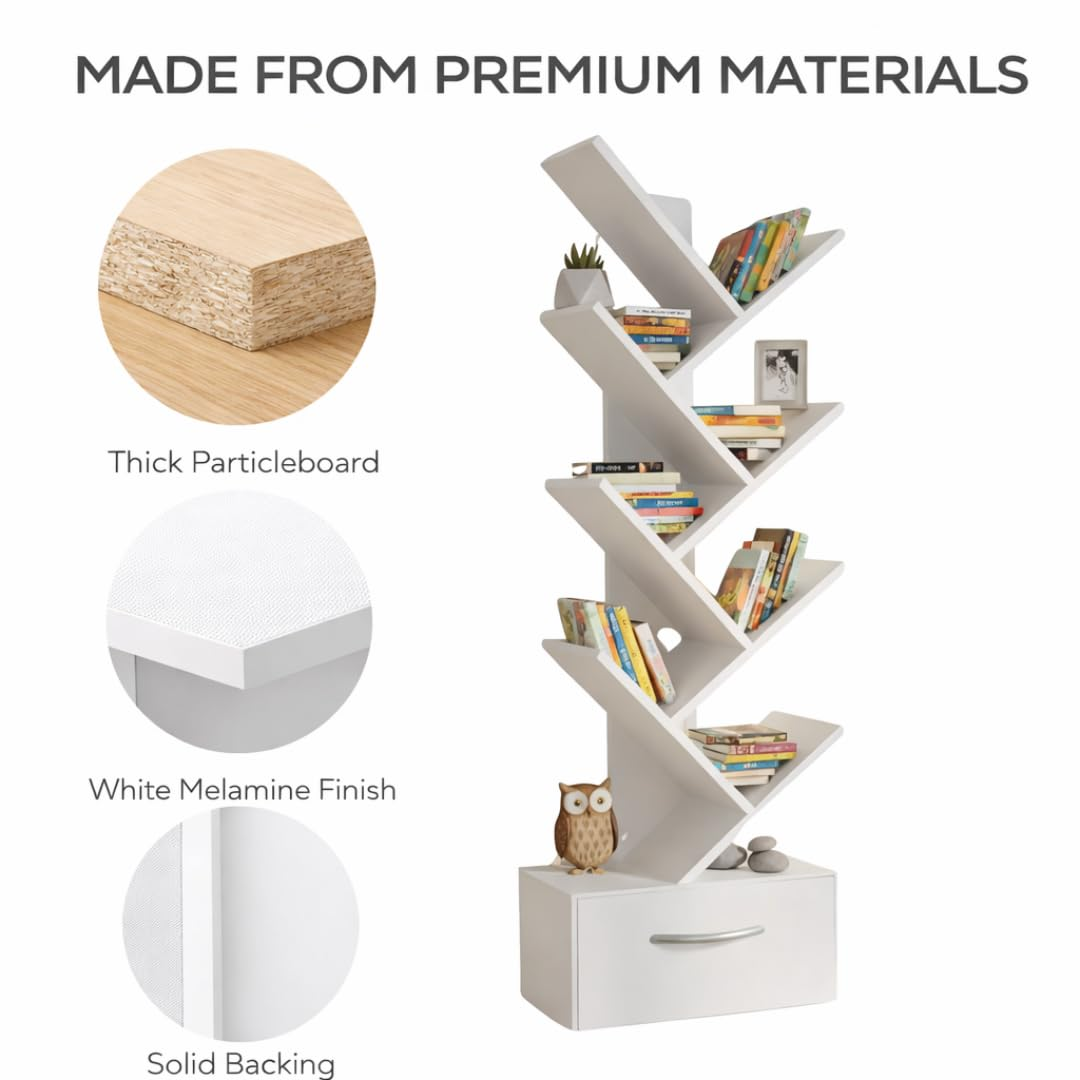 | Special Feature | Free-standing structure with stable base for everyday use, Integrated drawer for extra hidden storage, Multi-purpose bookshelf suitable for books, décor, and display items, Smooth white finish that complements modern and contemporary interiors, Vertical tree-style design for maximum storage in minimal floor spaceFree-standing structure with stable base for everyday use, Integrated drawer for extra hidden storage, Multi-purpose bookshelf suitable for books, décor, and display items, Smoot… See more |