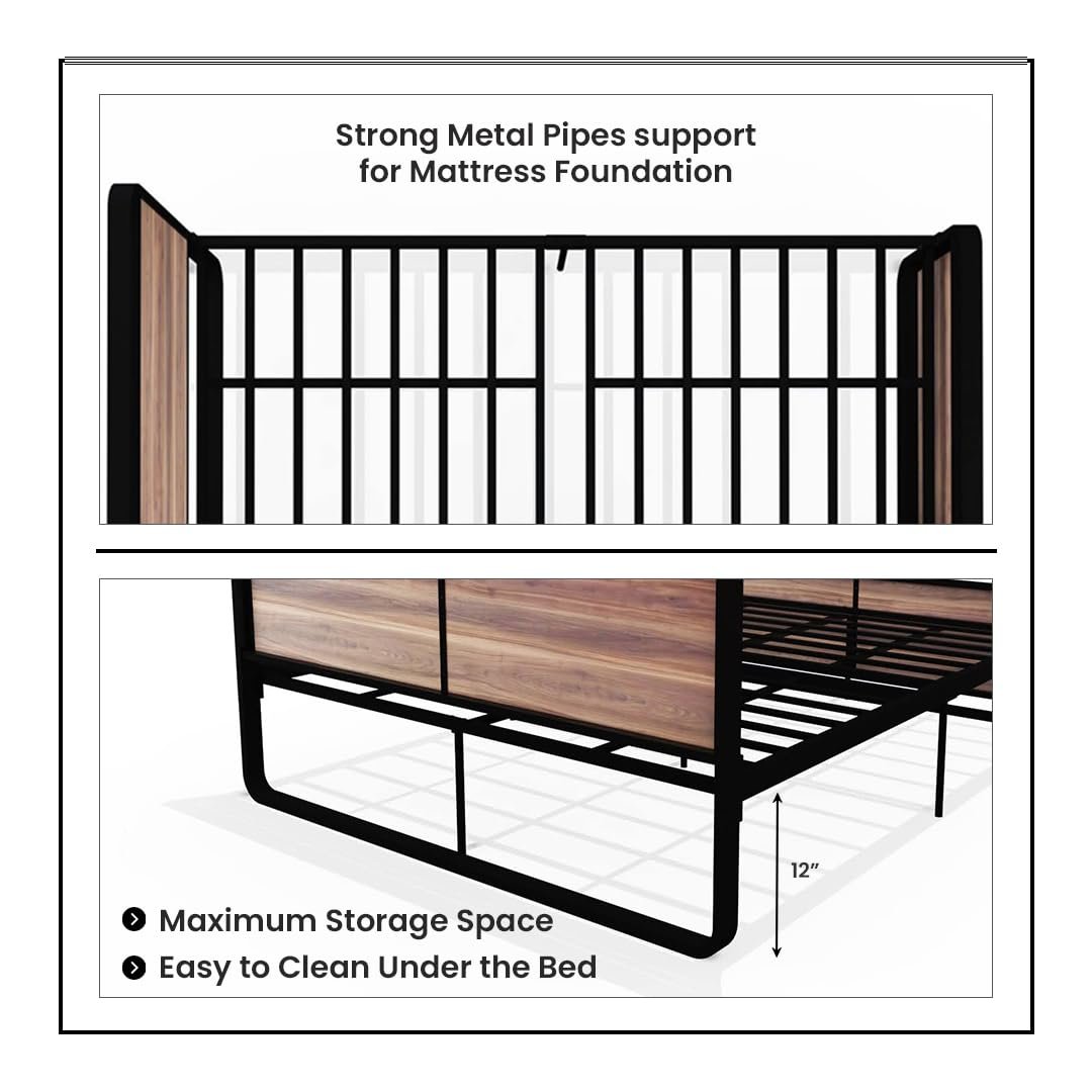 Krayog Vega Hybrid Wood and Metal Structure Bed (Black, Queen)