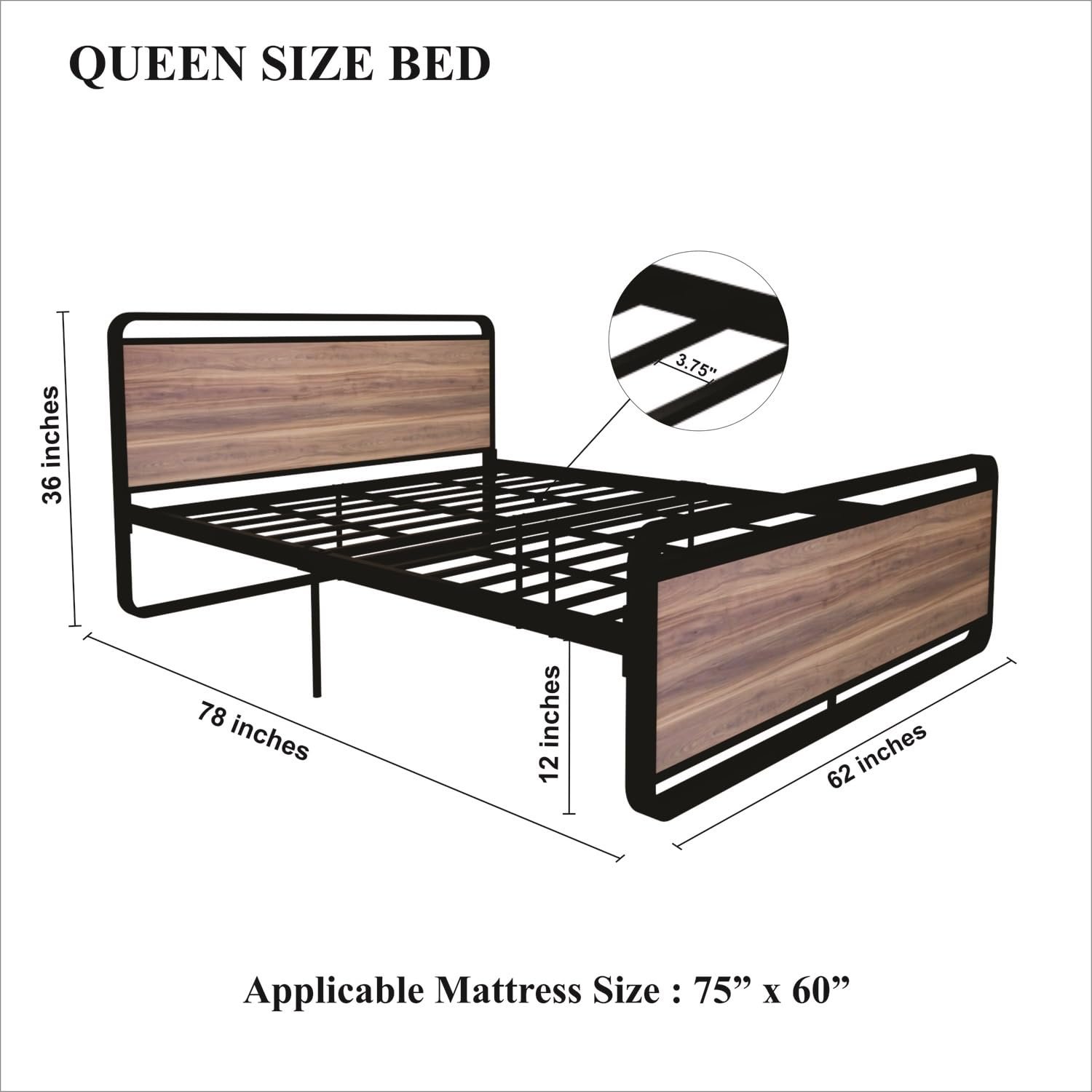 A strong and modern queen-size bed designed for everyday comfort. Built with a durable metal and ply wood frame, it offers excellent stability with a 250 kg weight capacity and requires no box spring. Suitable for a 60 × 75 inch mattress (not included), the bed comes with DIY assembly instructions and hardware for easy setup.