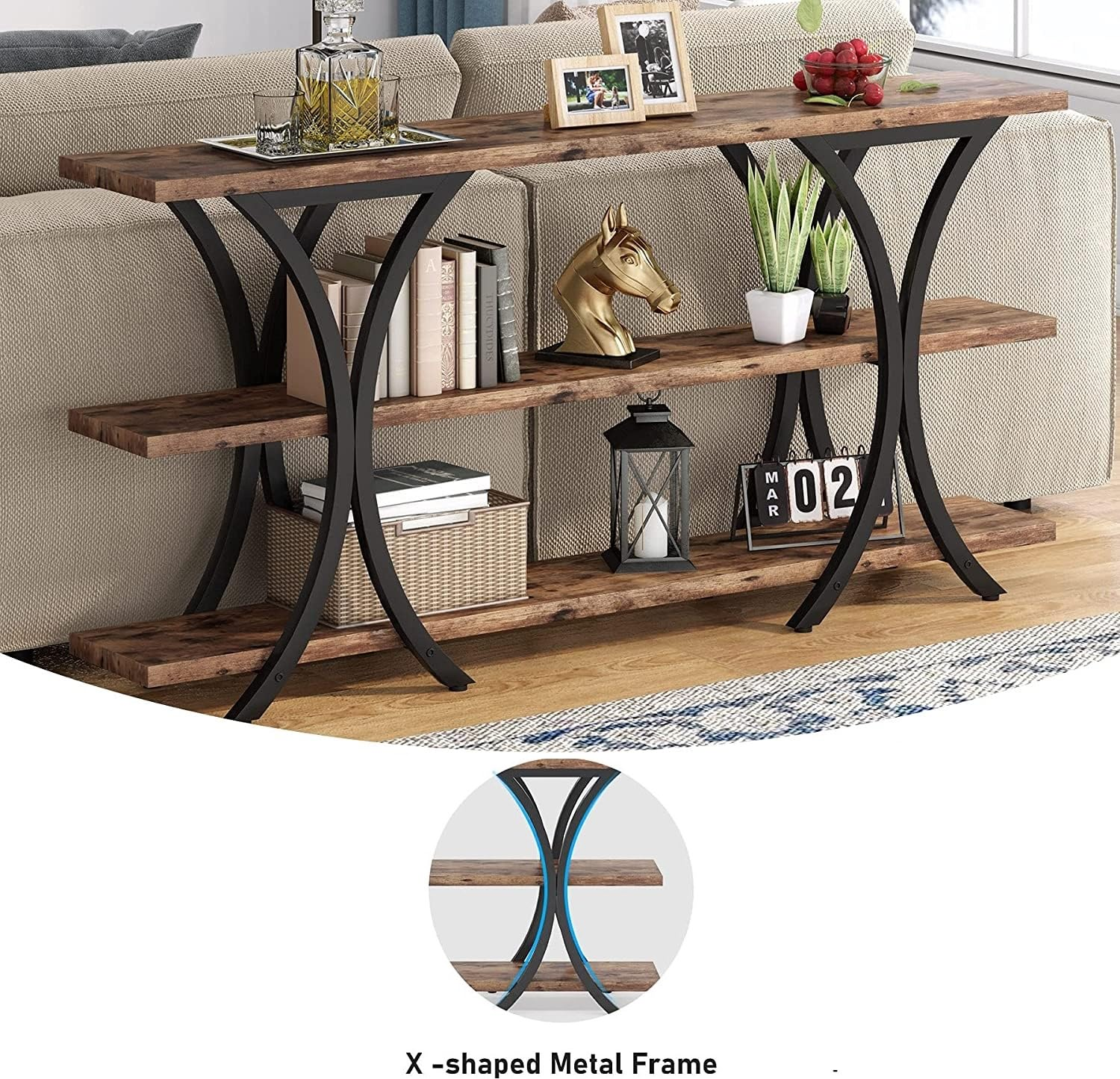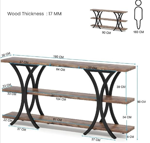 Upgrade your home with this 180 CM wood console table featuring a practical 3-tier design in a warm brown finish. Ideal for living rooms, entryways, and hallways, it provides generous space for décor, books, and daily essentials. The long, narrow structure fits compact spaces perfectly and comes with easy DIY assembly for convenience.