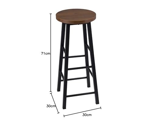 KRAYOG Wooden Bar Stool with Metal Legs – 71 cm Tall Counter Chair for Kitchen & Bar, Black Frame, Dark Beech Finish