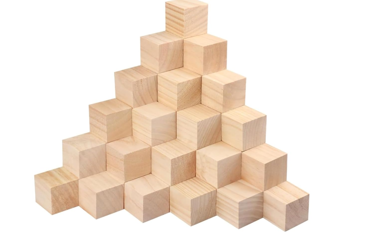 Set of 24 solid 1-inch wooden block cubes ideal for DIY crafts, art projects, school activities, painting, staining, engraving, and decorative creations. Smooth, sturdy, and easy to customize for all your creative ideas.