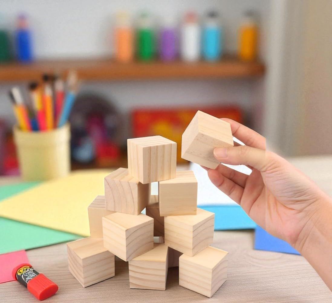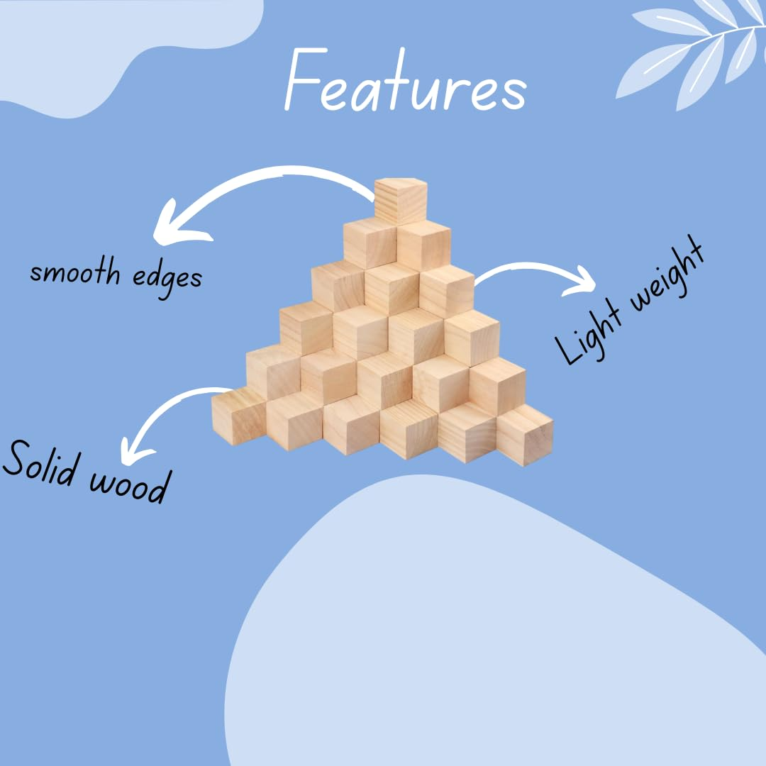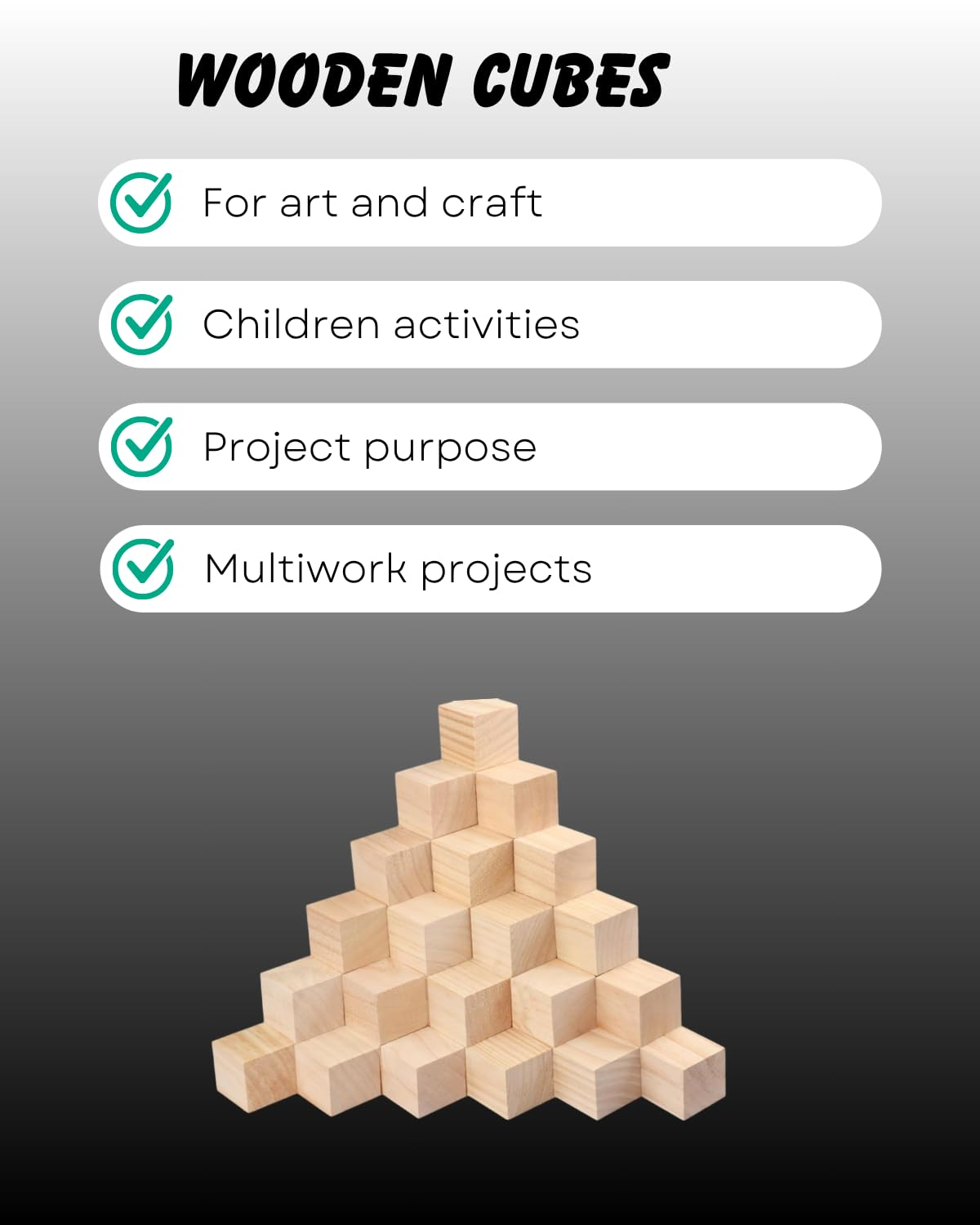 KRAYOG Wooden Block Cubes for Crafts & DIY Projects – 24 Pieces, 1 Inch Solid Wood Square Blocks for Art & Creative Activities