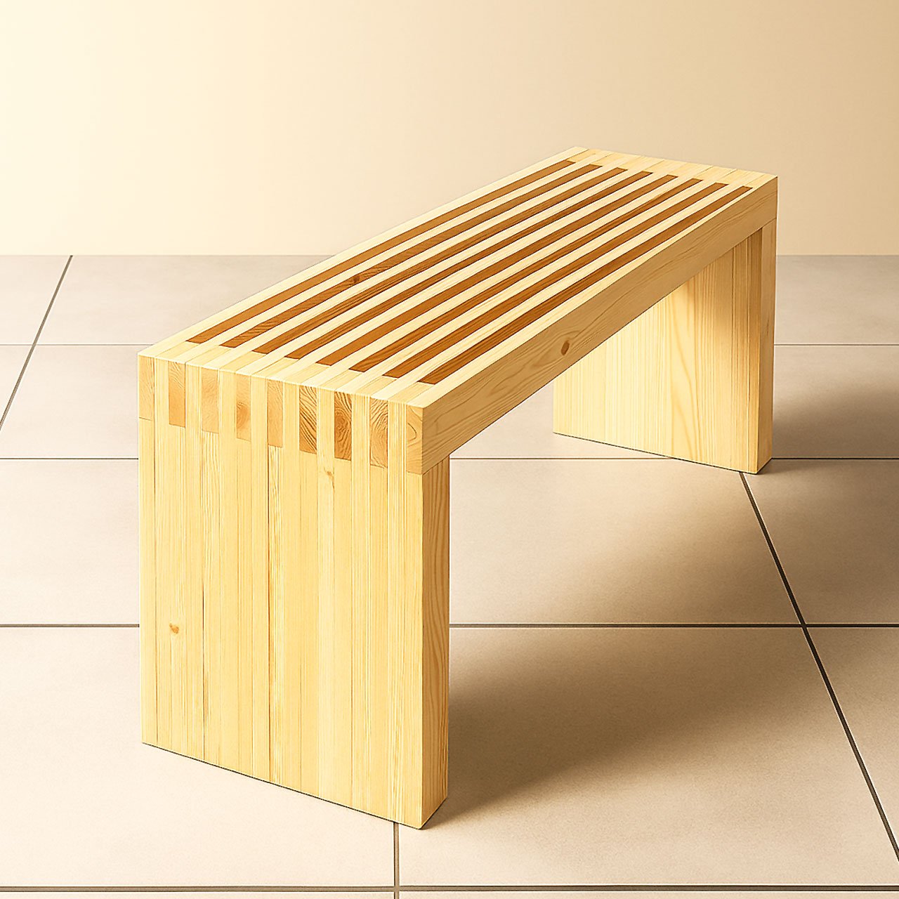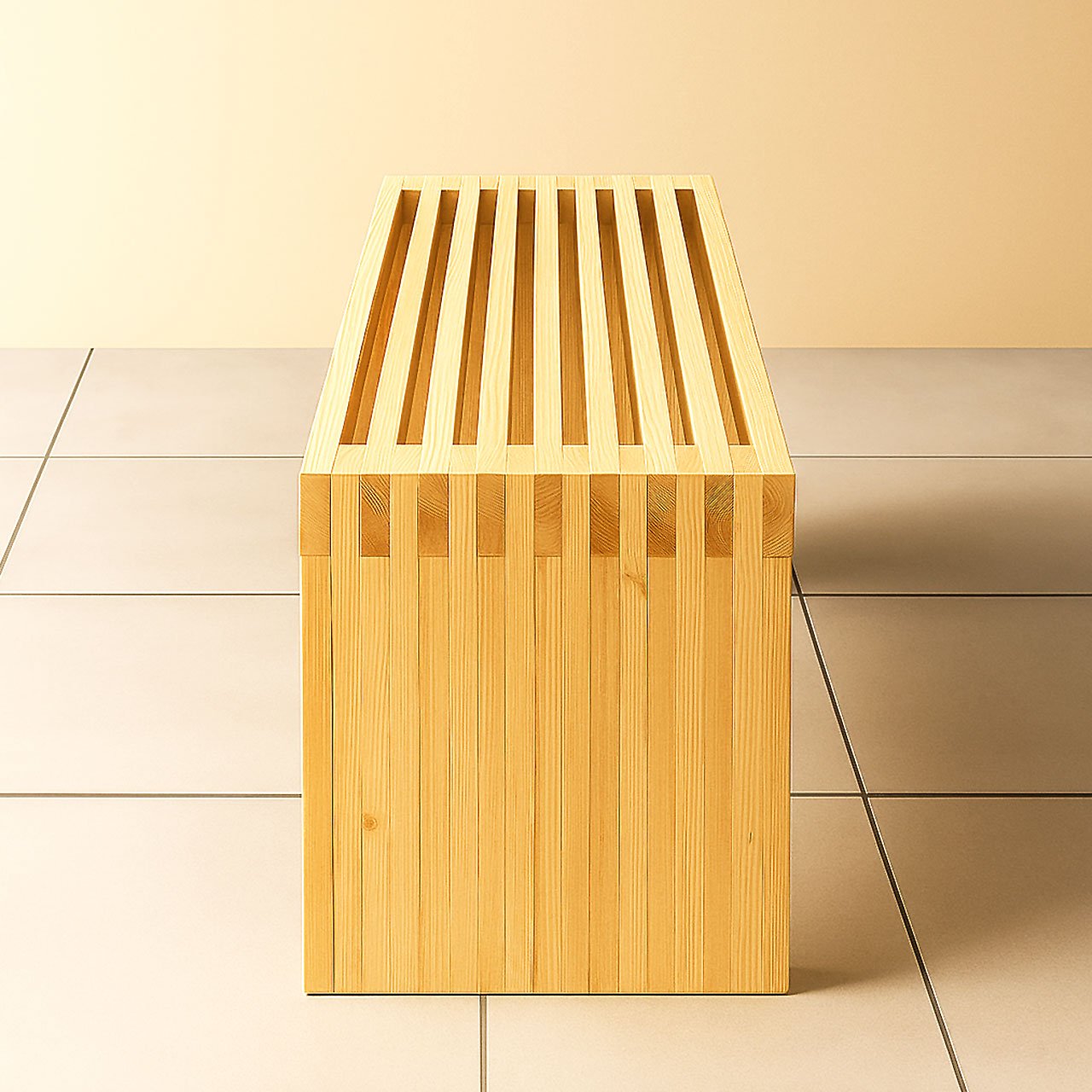 Two-Seater Large Slatted Cedar Bench – Pinewood Solid Wood Entryway Bench