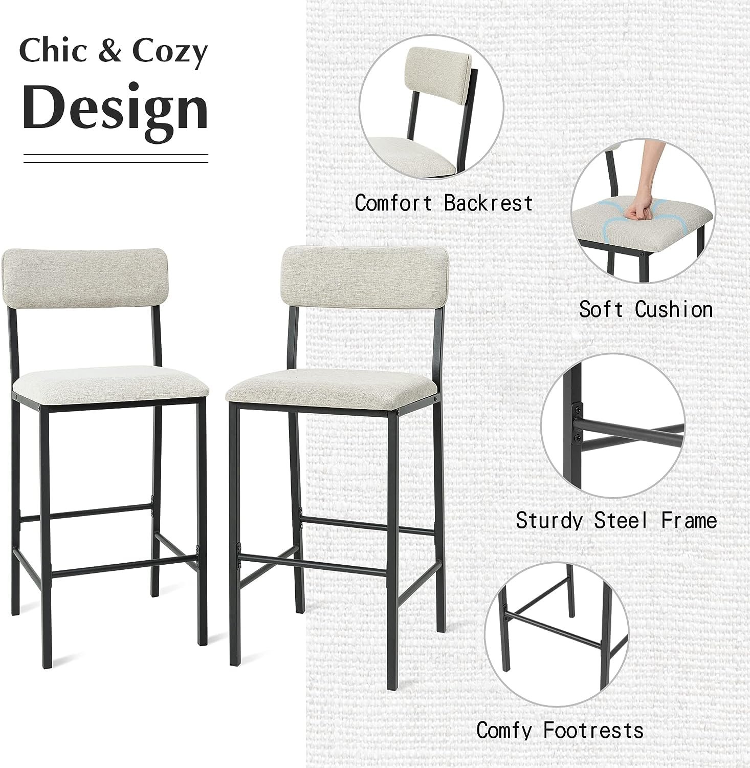 - COUNTER HEIGHT SEATING PERFECTION: Designed at counter height, these barstools offer the perfect vantage point for various activities. Whether enjoying a casual meal or entertaining guests, the counter height ensures an ideal seating arrangement for diverse occasions.