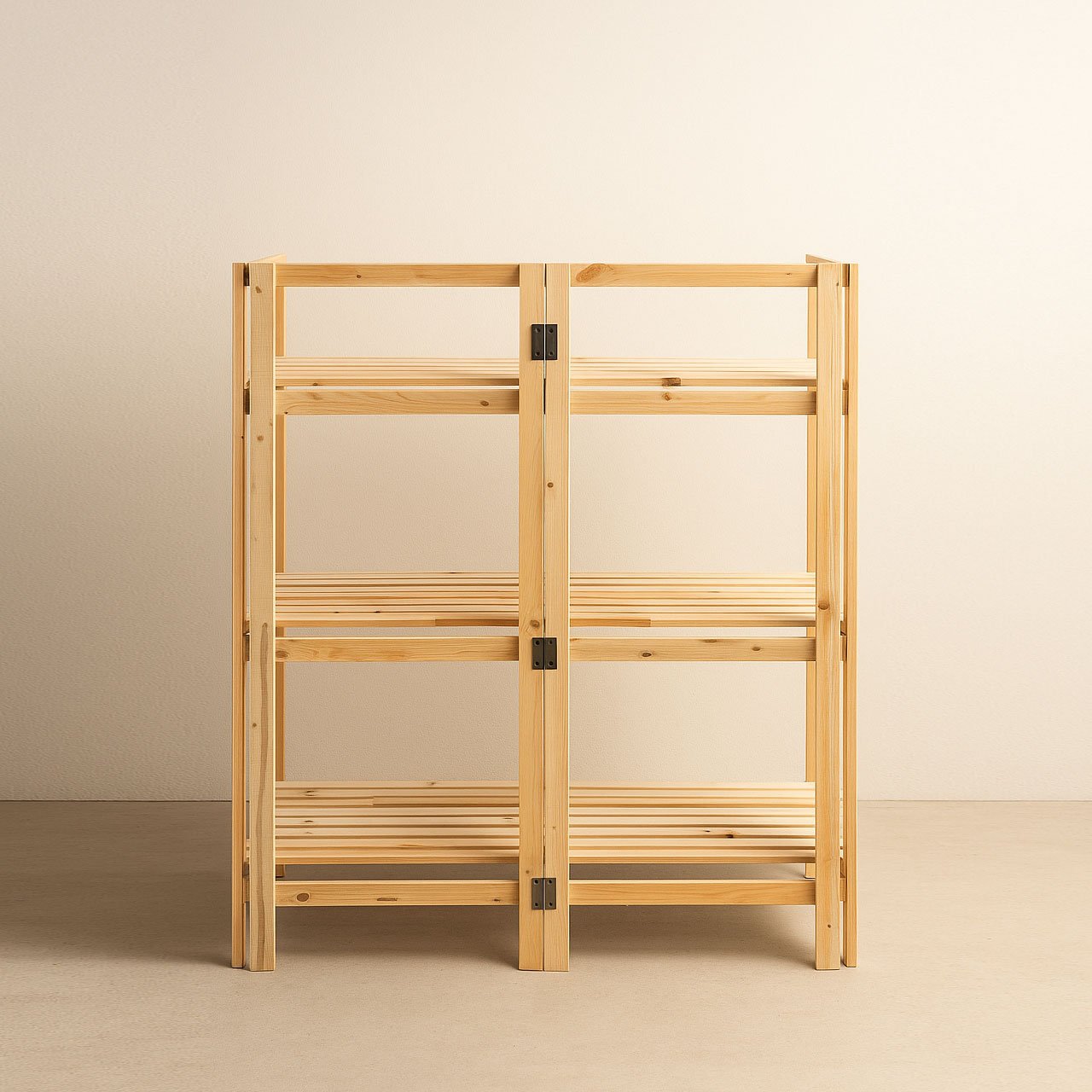 Crafted from high-quality pinewood, the Mega Flip shelf is both lightweight and strong, making it incredibly easy to transport and assemble at any event. Its generous 100x50cm shelf size offers ample space to showcase products cleanly and professionally — from artisanal goods to footwear — and even works great as a solid wood shoe rack for home or store use.