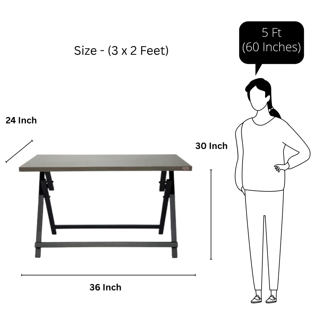 Multi-Purpose Table in 18MM Pre-Laminated Panel Board Top in Grey & MS Powder Coated Stand Home, Living Room, Study Room | Heavy Duty Table (3×2 Ft)