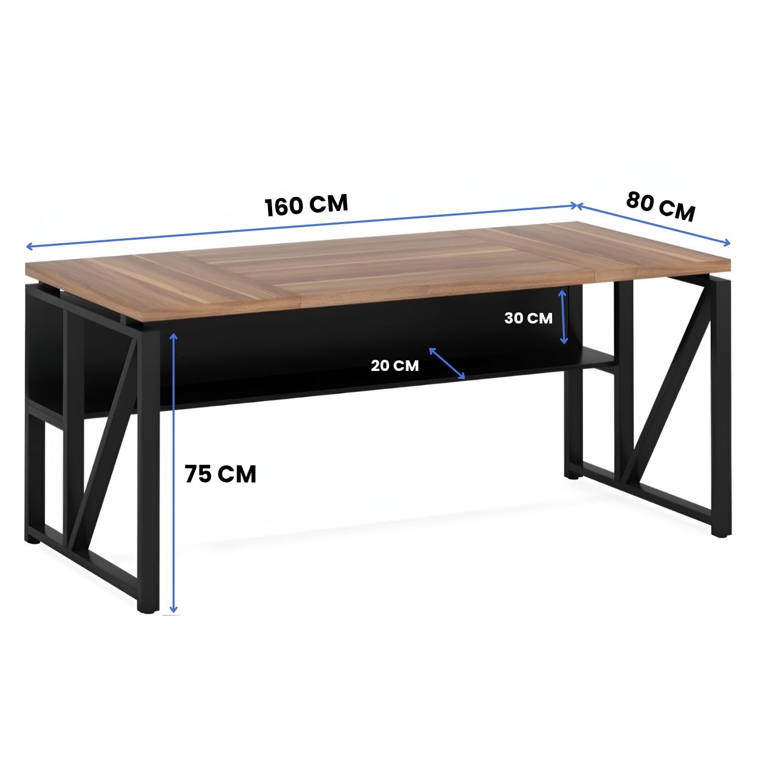 A spacious and durable desk designed for home offices and study rooms. Built with engineered wood and a strong metal frame with powder-coated finish, it measures 160 × 80 × 75 cm for comfortable working. Features a space-saving design, a wide storage shelf, easy DIY assembly, and comes with a 1-year manufacturer warranty.