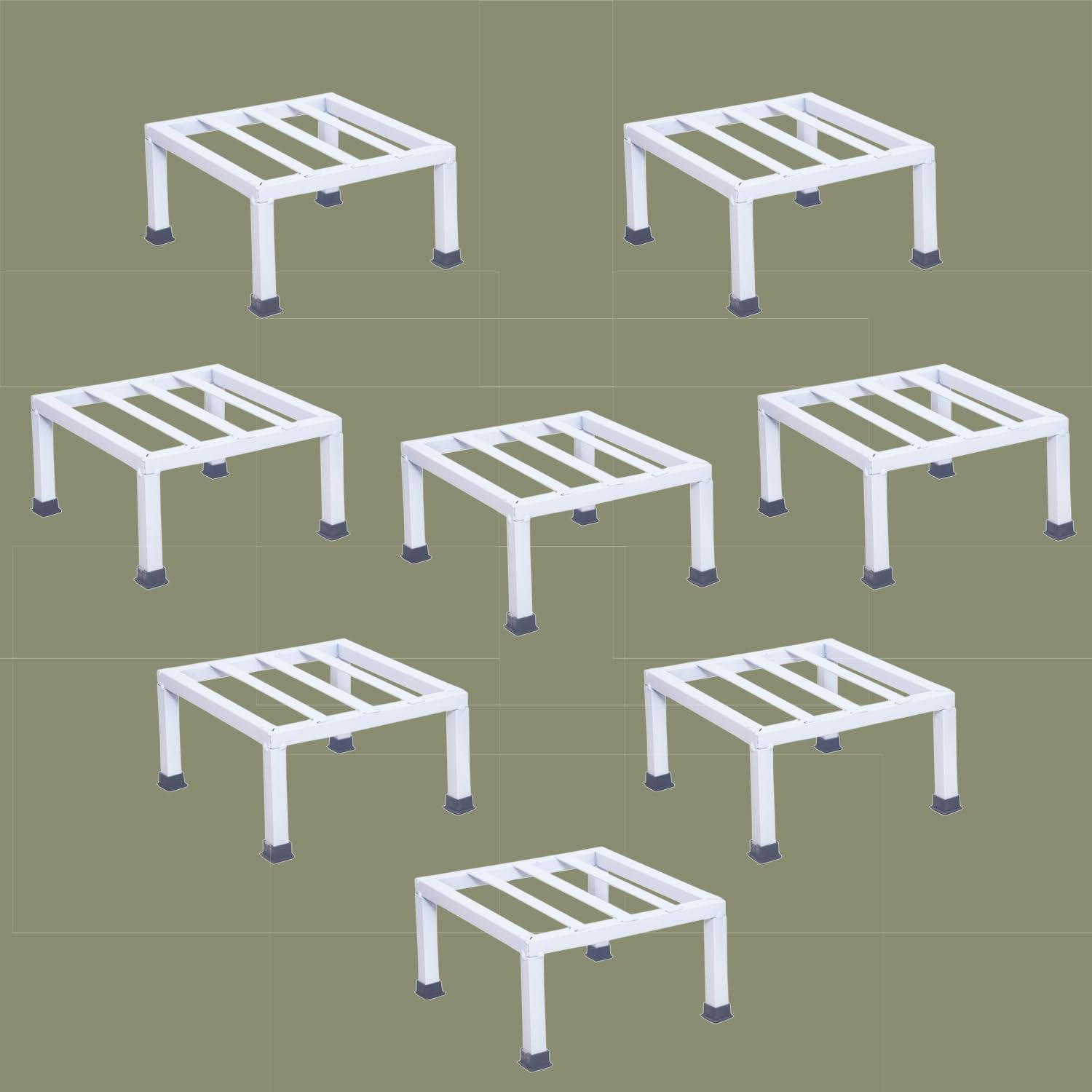 Premium Strong Flower Pot / Gamla Square Stand For indoor and Outdoor Plants | Square Shape Thick and Strong Leg For Garden, Balcony, White – Set of 8