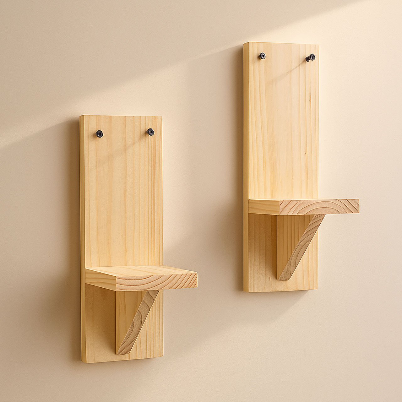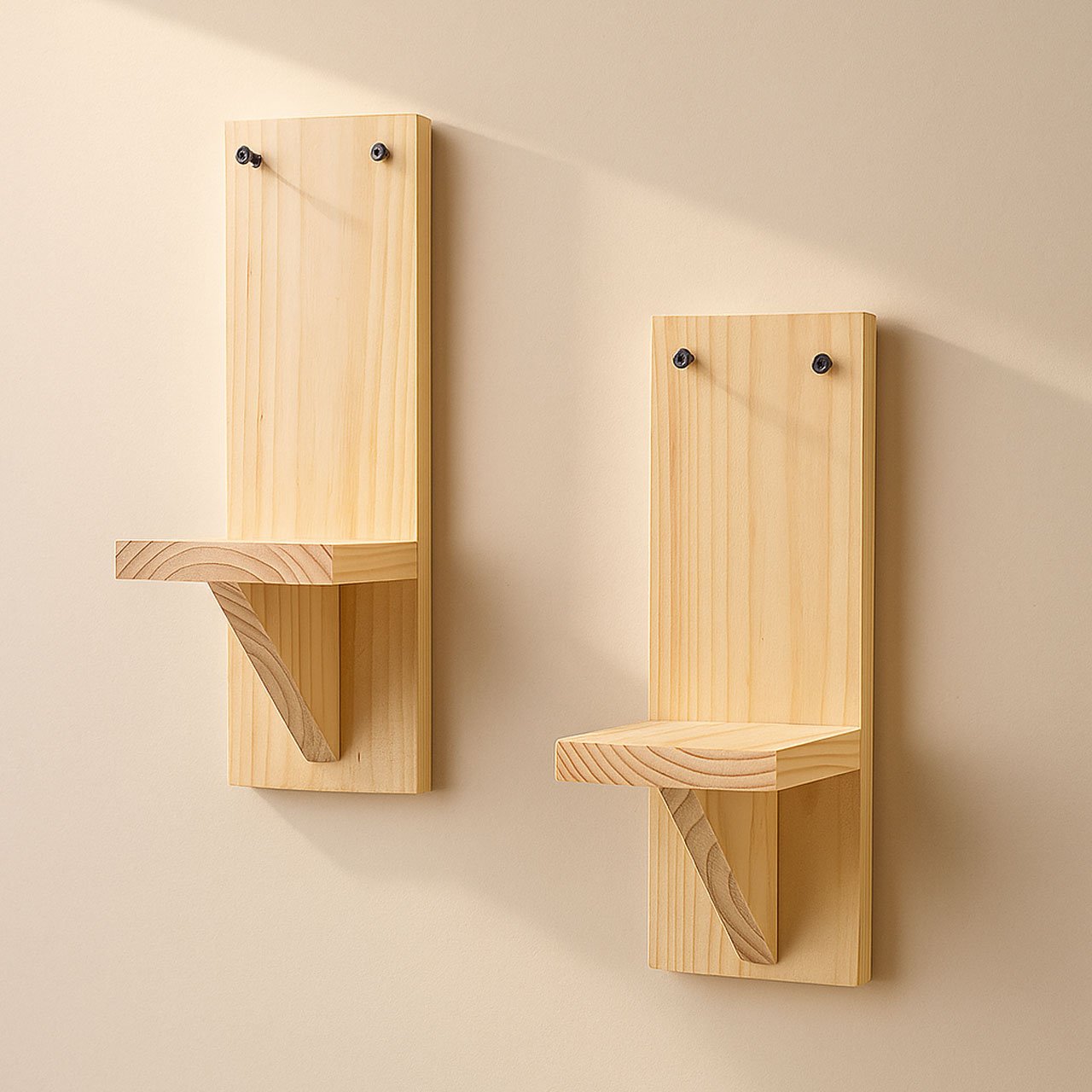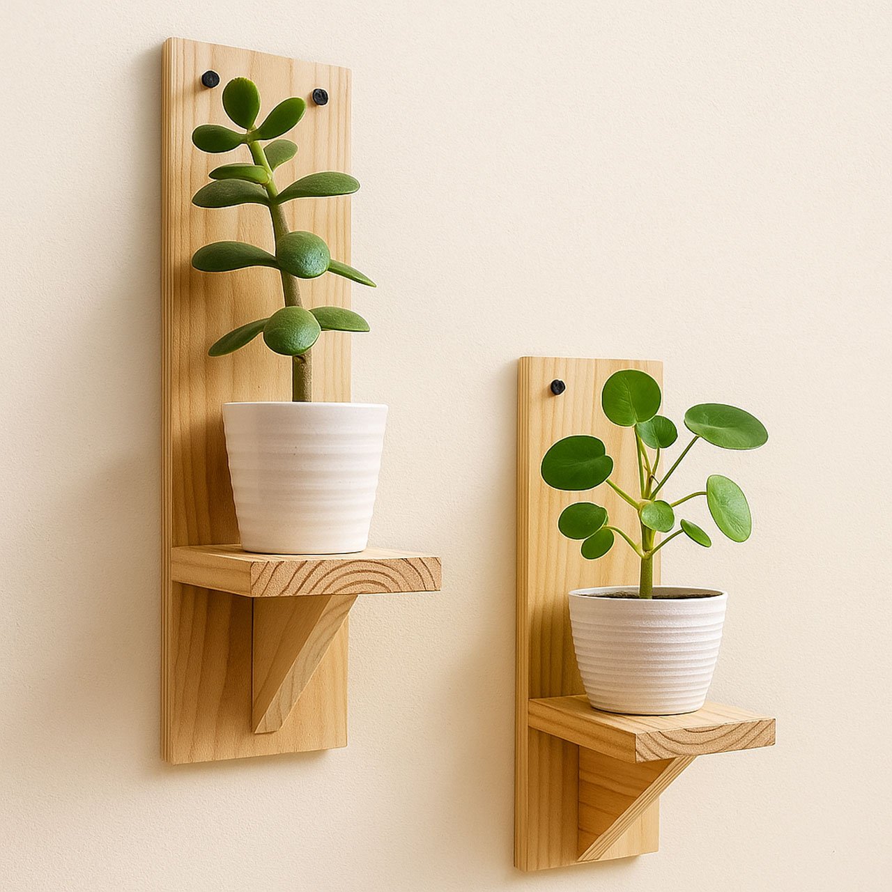 Small Wooden Wall Shelves for Plants – Set of 2 | Mini Floating Wall Shelf | 1-Tier Each | Wall Mounted Decorative Rack | Beige | Ideal for Succulents, Candles, Home Décor