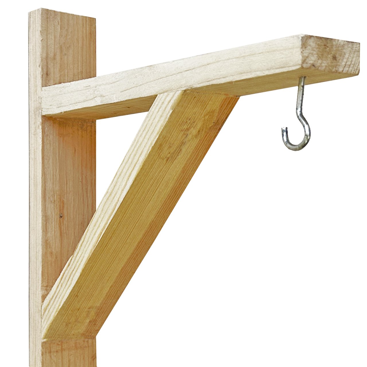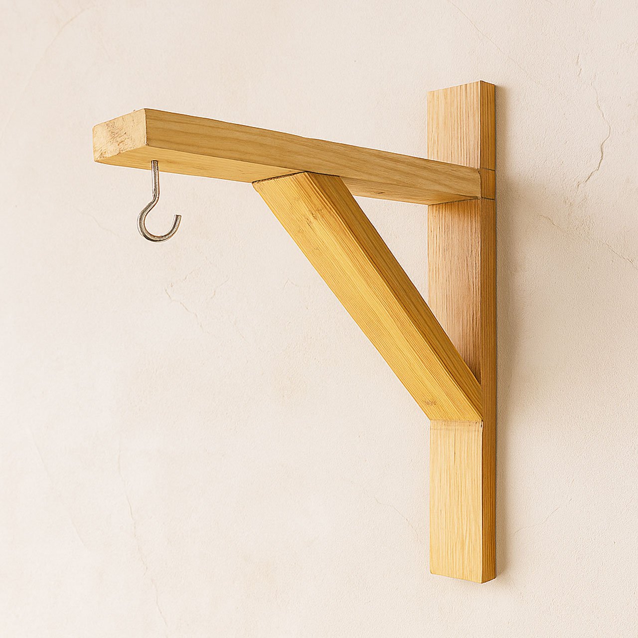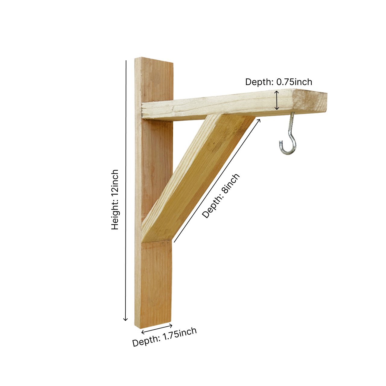 These wooden shelf brackets are expertly crafted for durability and style. Featuring a strong triangular design and pre-fitted metal hooks, they are perfect for securely hanging your favorite planters or garden accessories. Whether placed on a balcony, patio, or living room wall, these holders provide reliable support and visual appeal.