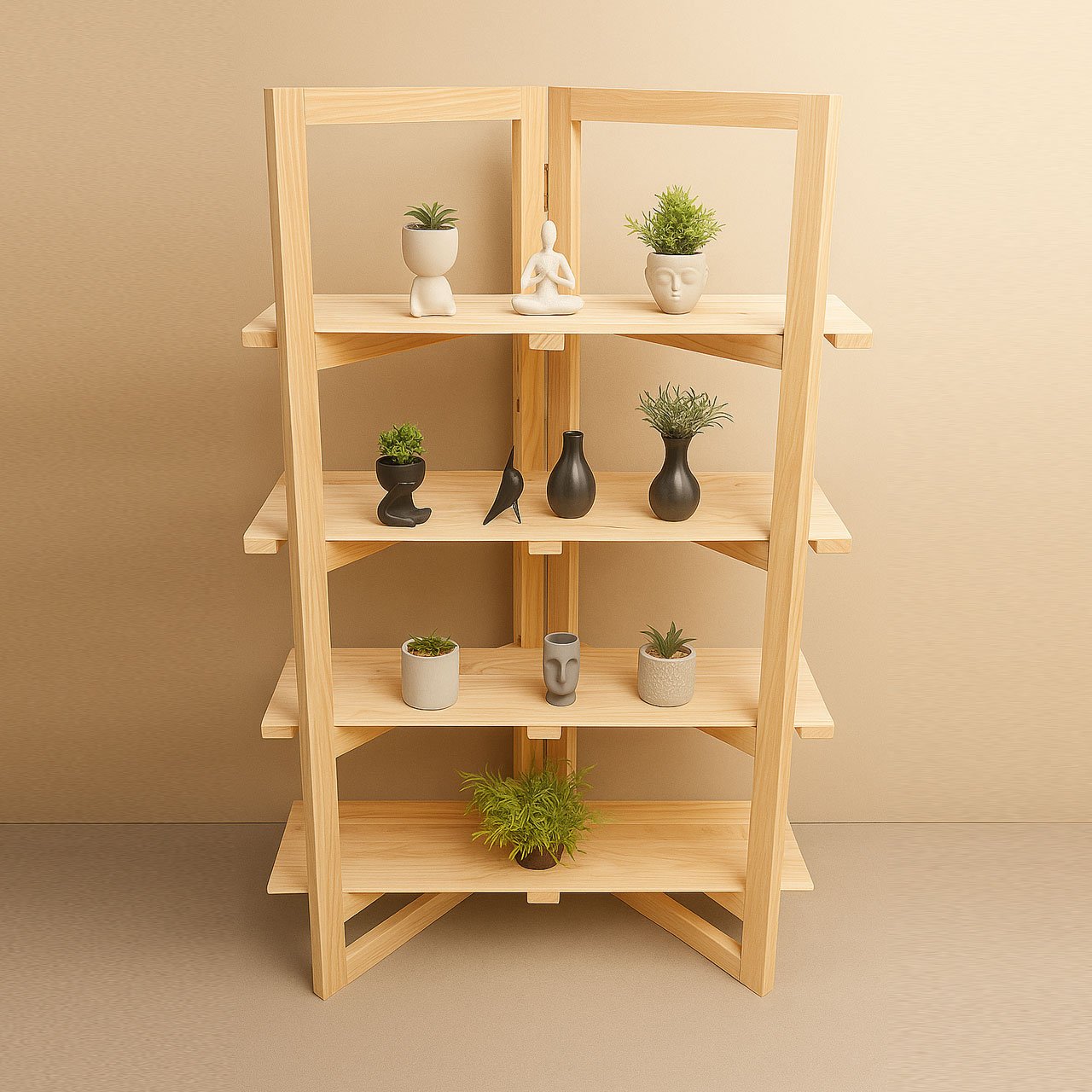 Looking for a smart, stylish, and easy-to-carry display solution? The Rennover Foldable Window Display Rack with 4 Shelves is designed for artists, creators, and sellers who need an elegant yet functional setup on the go. Crafted from premium pinewood, this unique zig-zag window design not only enhances the visual appeal of your booth but also provides ample space to display your products beautifully.